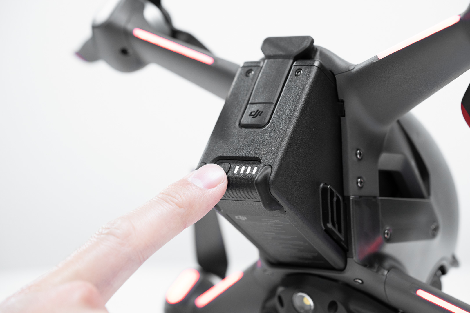 在請動電源後,DJI FPV會有很炫砲中二的啟動音效,猶如史詩電影主角出現的感受,緊接著燈號則會逐漸亮起,同樣具備紅綠雙色燈號顯示,主要是提供操駕者辨識飛機方向性以及FPV狀態。