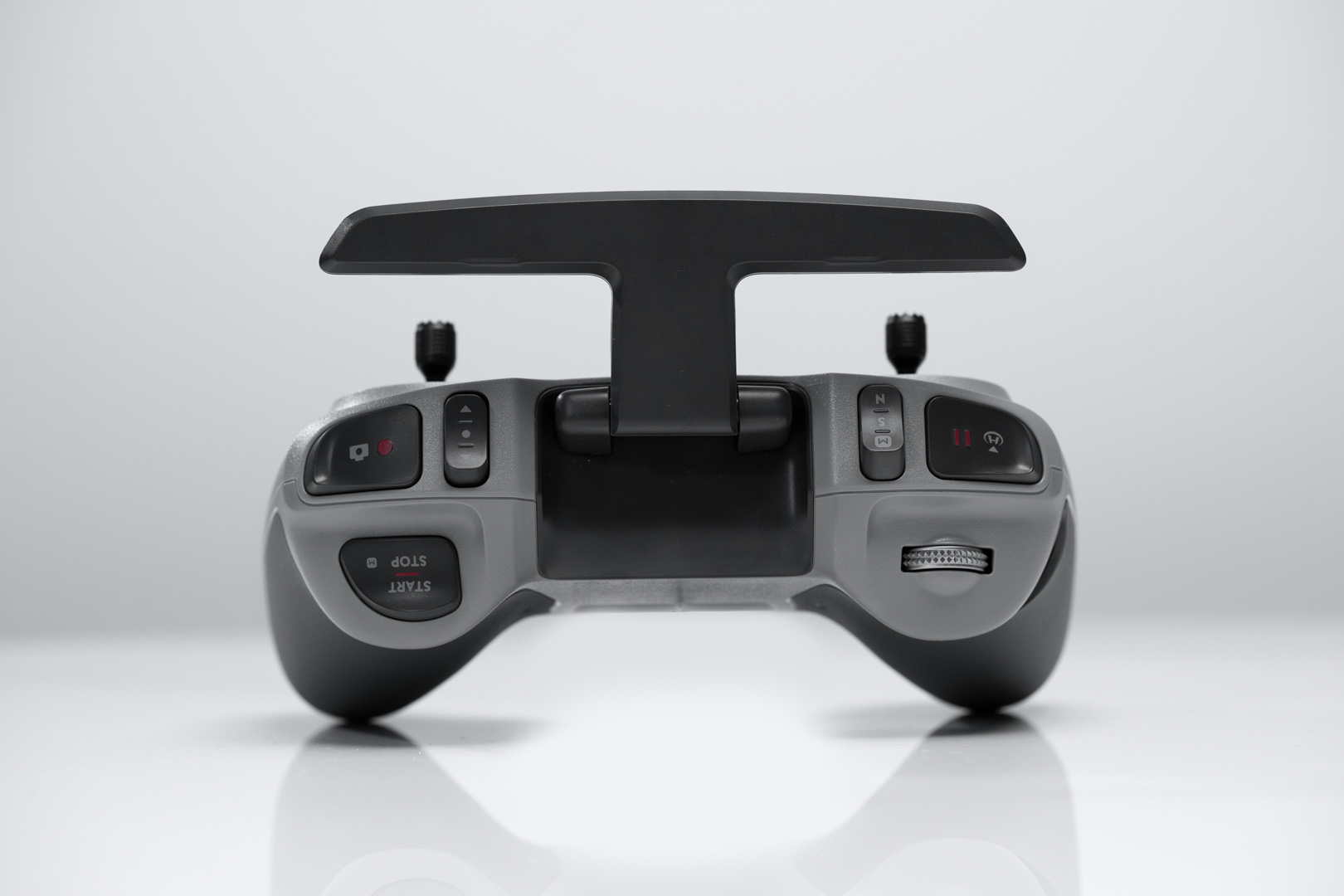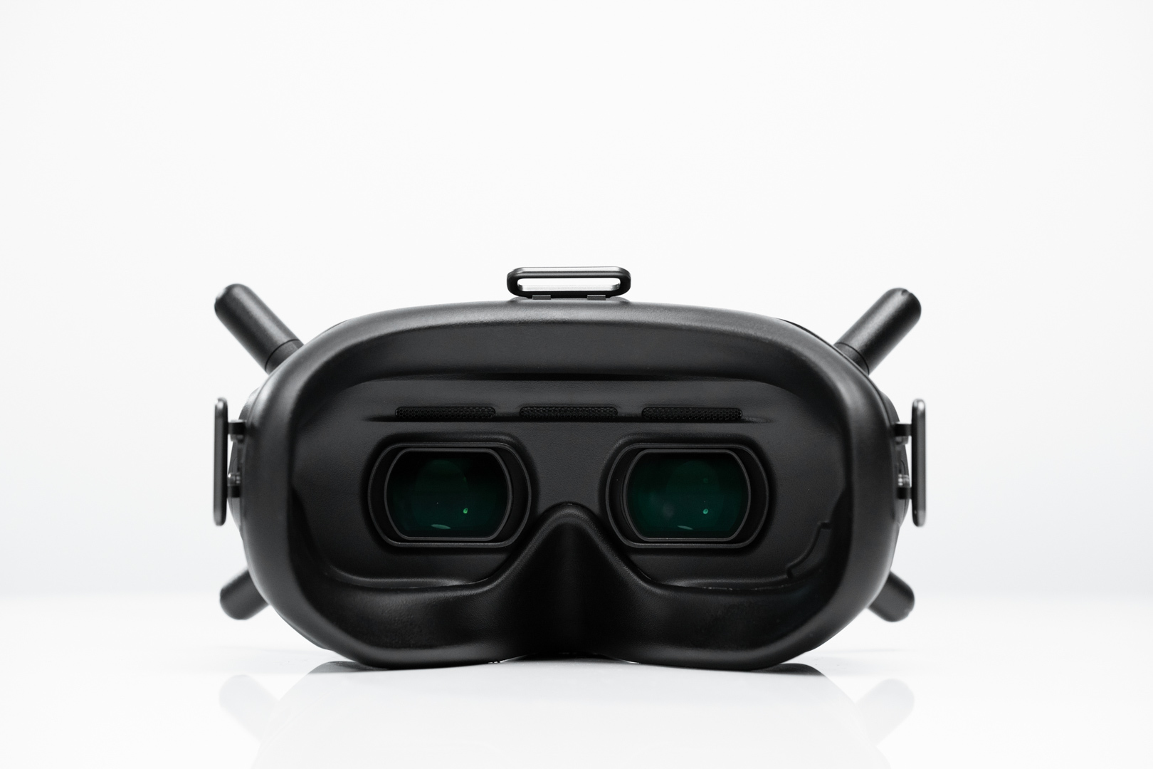 飛行眼鏡可以說是穿越機的靈魂之窗,這回飛行眼鏡整體造型上很像是漫威英雄人物所使用的武器,內建雙2英吋螢幕,實際觀看體感感受類似看IMAX電影螢幕。圖傳模式可分為,低延遲模式:810p/120fps,延遲低於 28 ms*;高畫質模式:810p/60fps,延遲低於 40 ms*,最大碼率來到最大 50 Mbps。