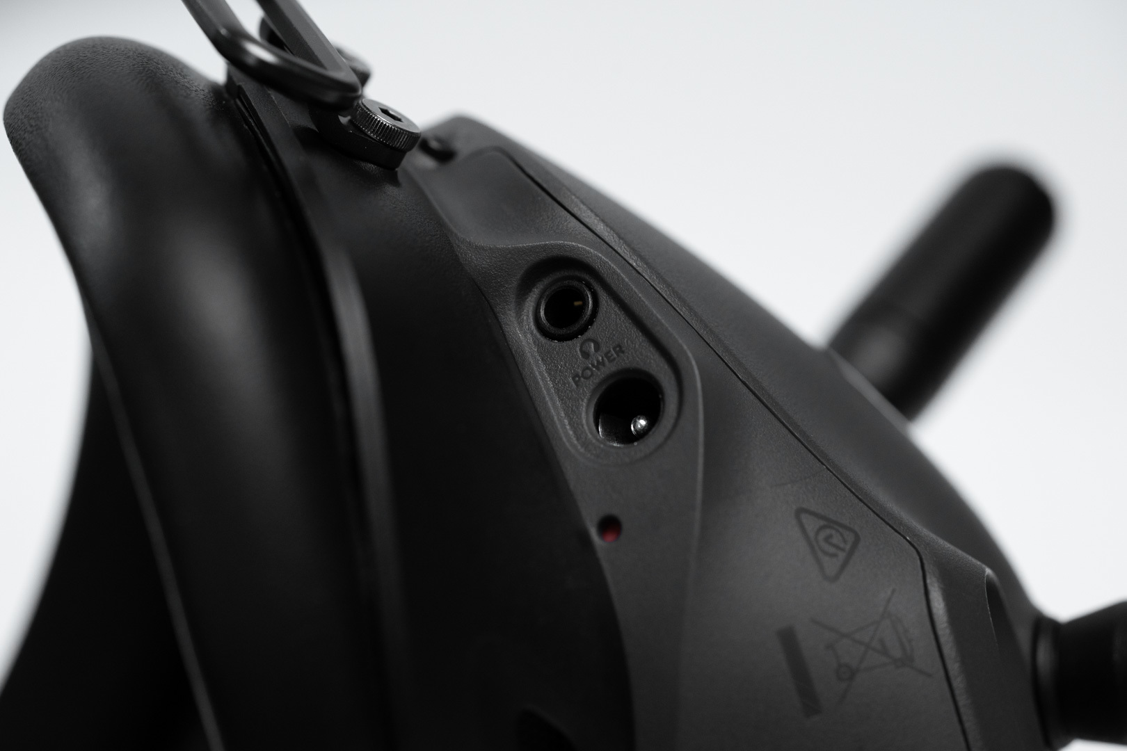 飛行眼鏡右下角具備3.5音源輸出孔以及飛行眼鏡電源輸入孔。