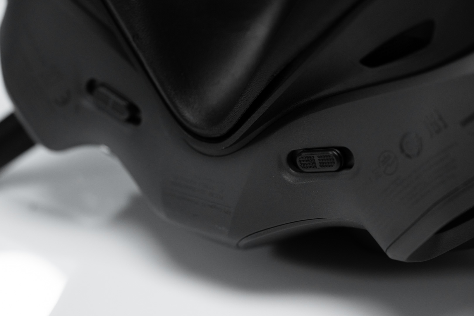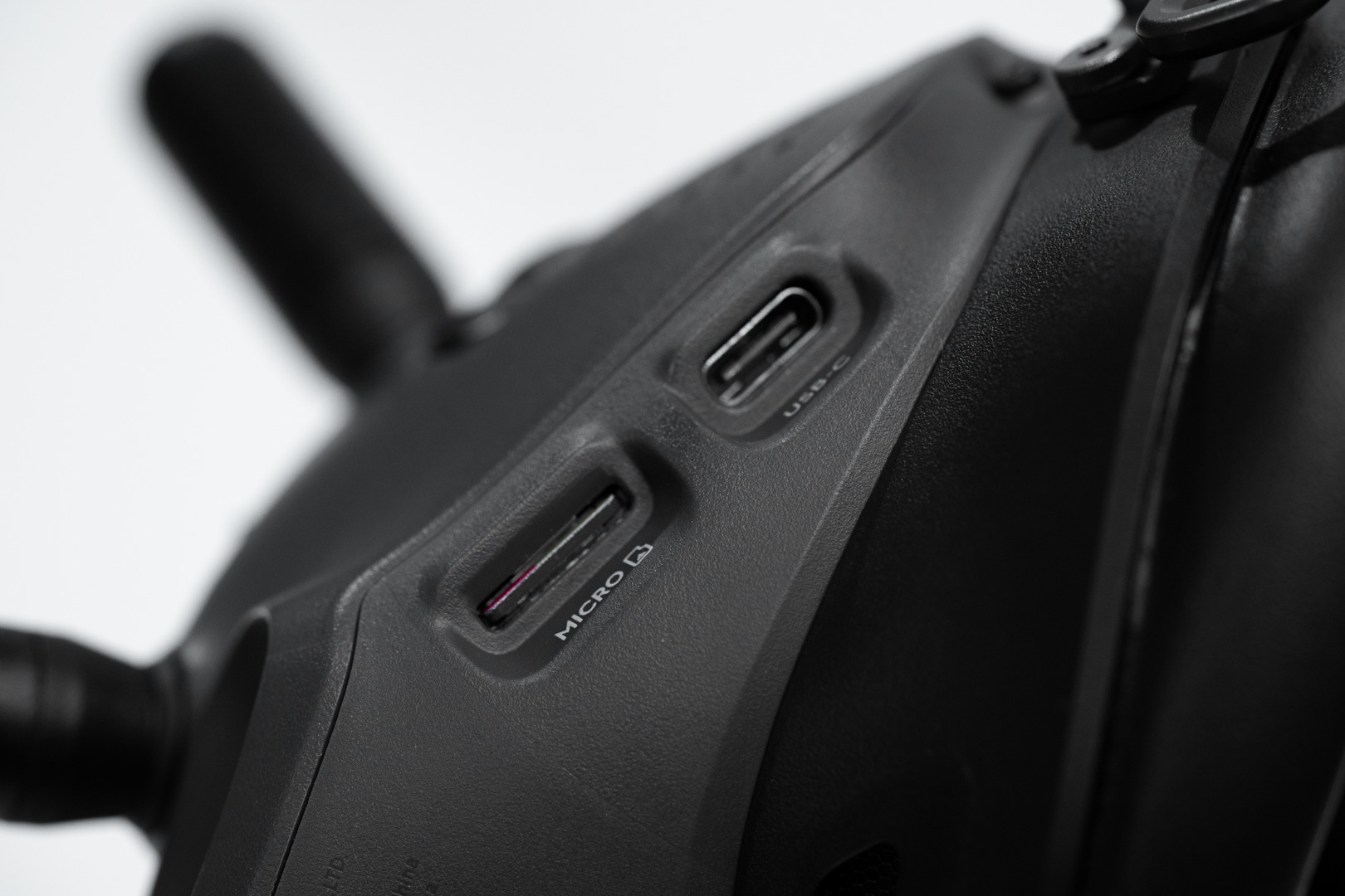 飛行眼鏡左手邊則是可安裝眼鏡內錄記憶卡以及手機連結Type-c連接孔。