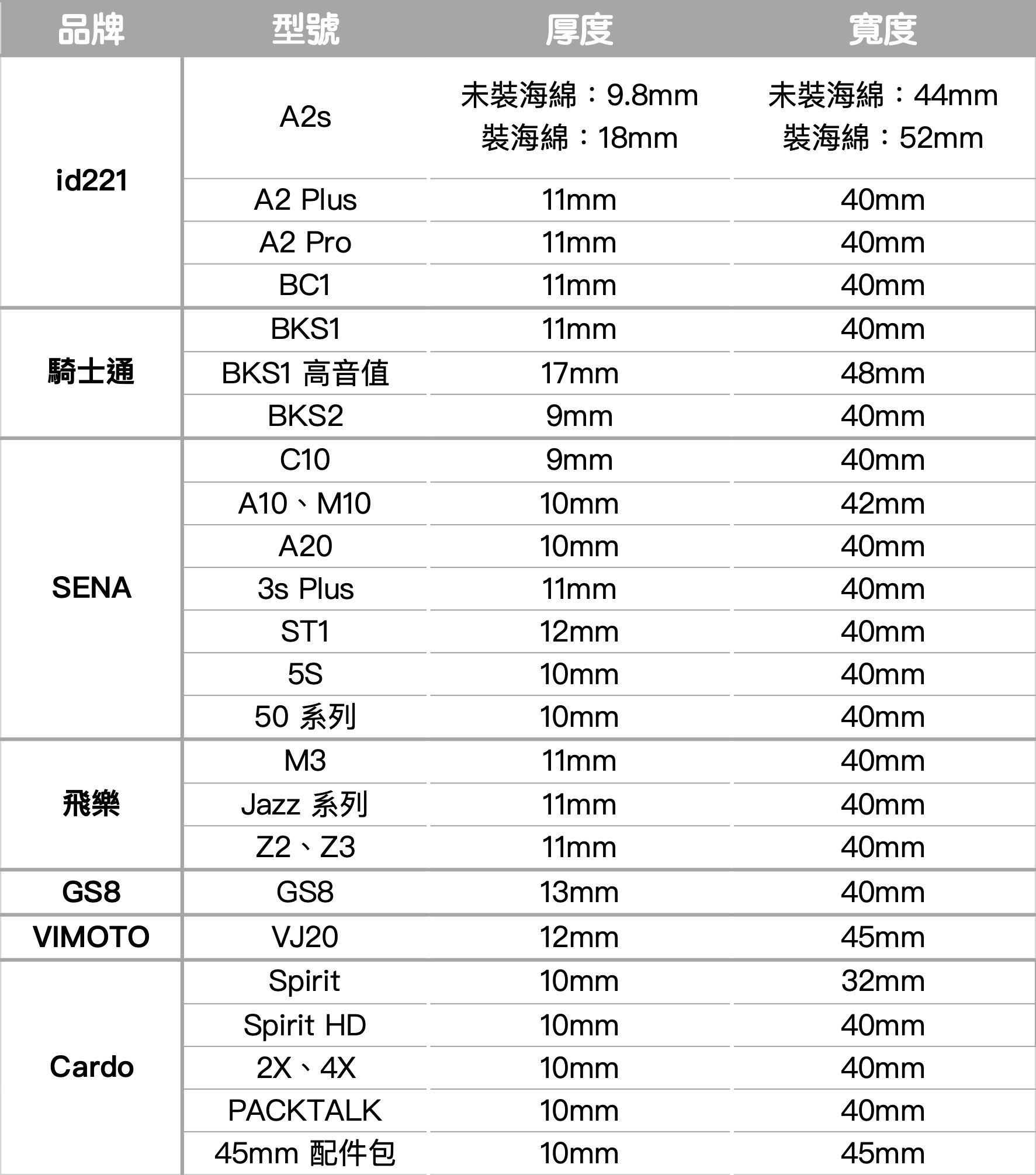 下方幫你用表格快速整理出不同品牌不同型號的藍芽耳機厚度和寬度~