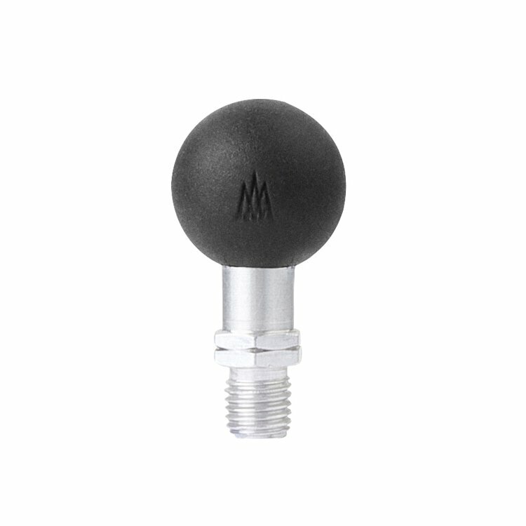 它的球頭能夠配合 RAM Mounts 支架安裝在機車後照鏡上,