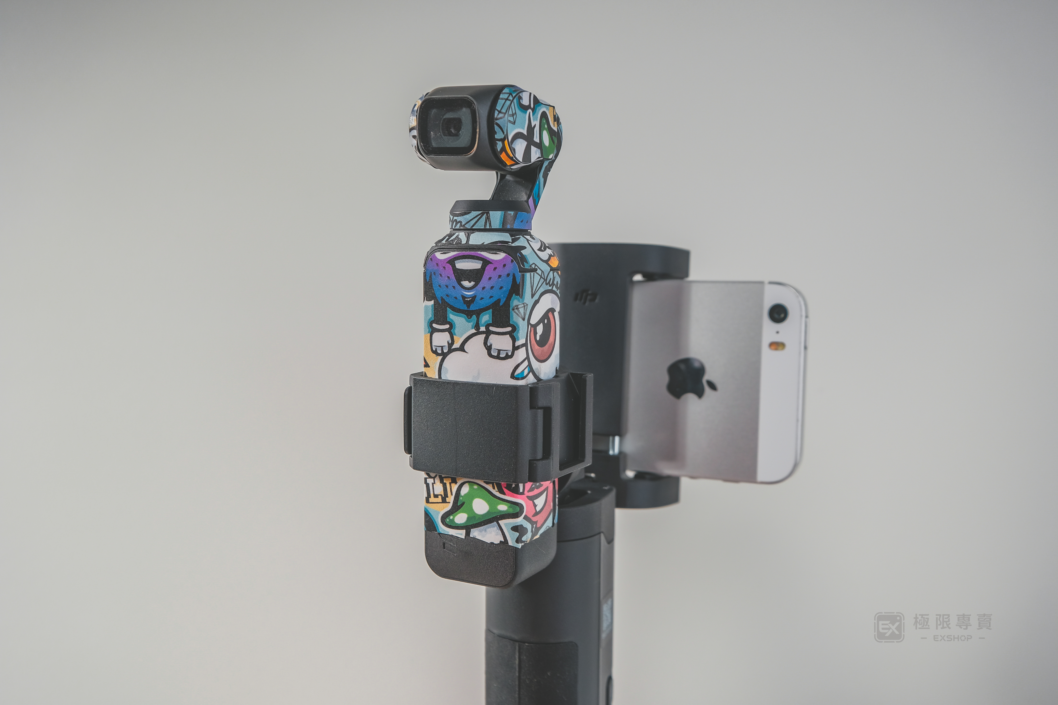 它有效的解決Pocket 單機時廣角不足、雲台操控、手機放置以及放置拍攝等問題。