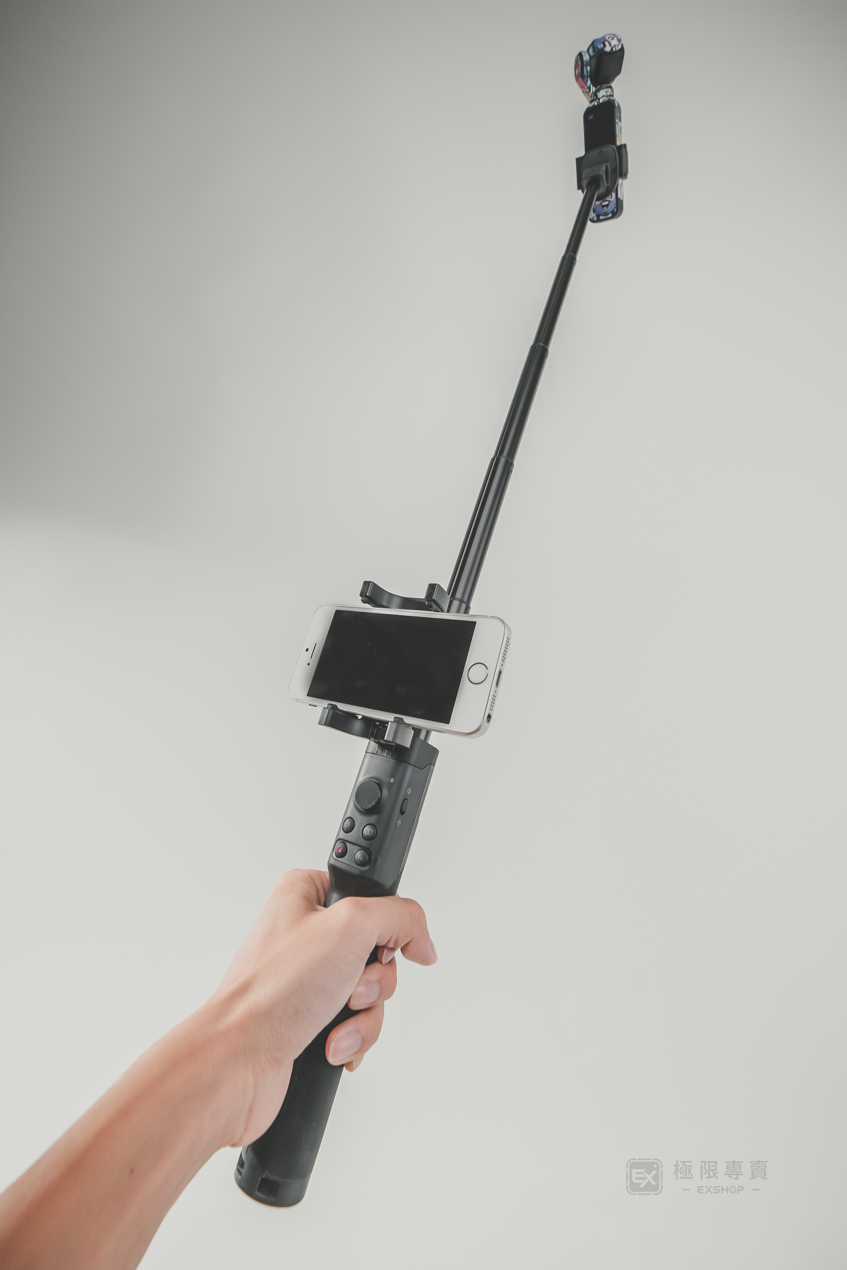 所幸這支原廠自拍棒幾乎解決了以上困擾,讓原本單機就很強大的Pocket,幾乎進化為完全體的狀態,威力大增---