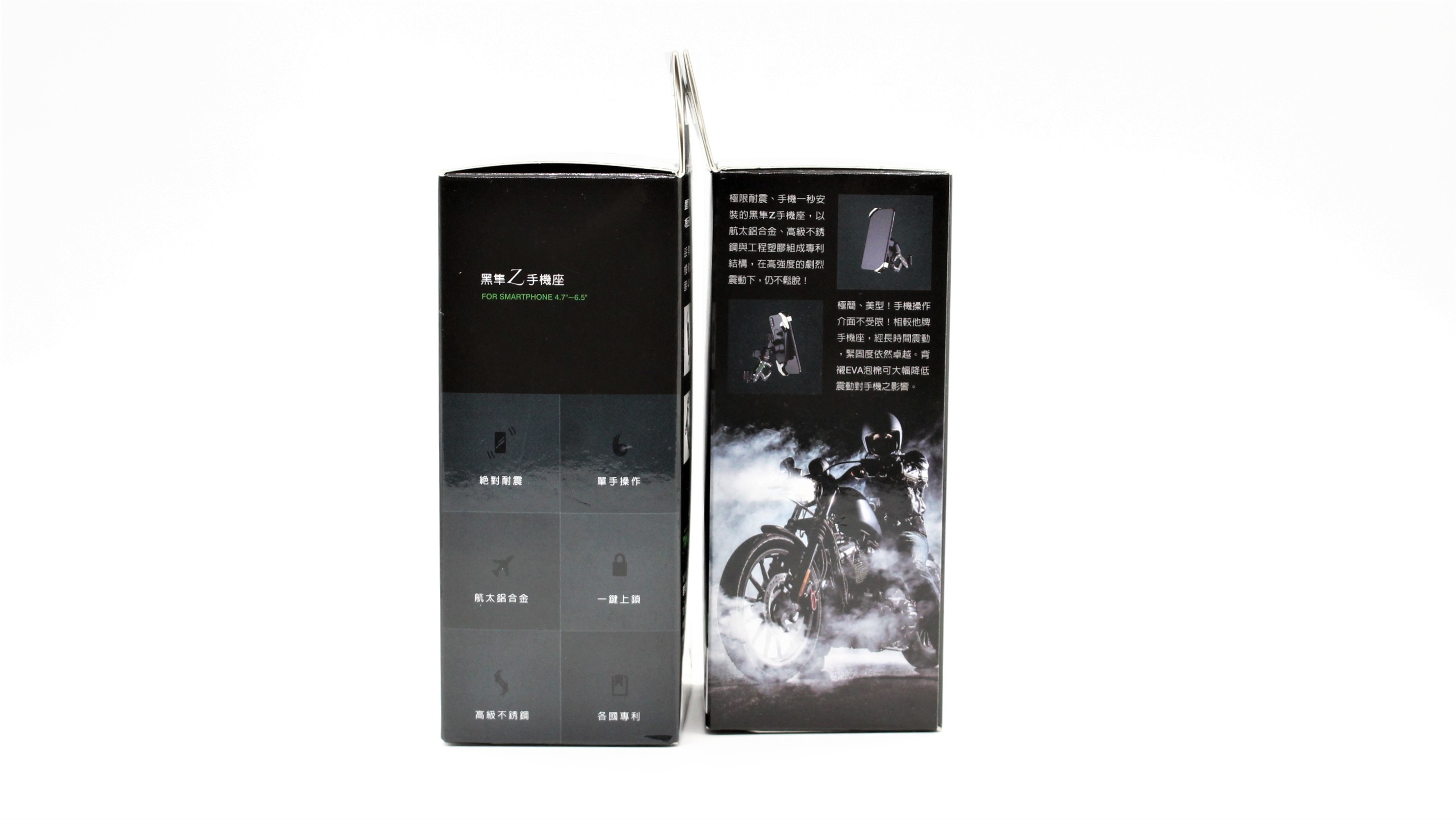 側面分別是商品介紹及產品特色,特別的是這款手機架是使用航太鋁合金材質,有太空梭般的堅固耐用外,還很輕巧也不怕風吹與淋,不知道未來會不會被 NASA 拿去放在火箭上也說不定XD。