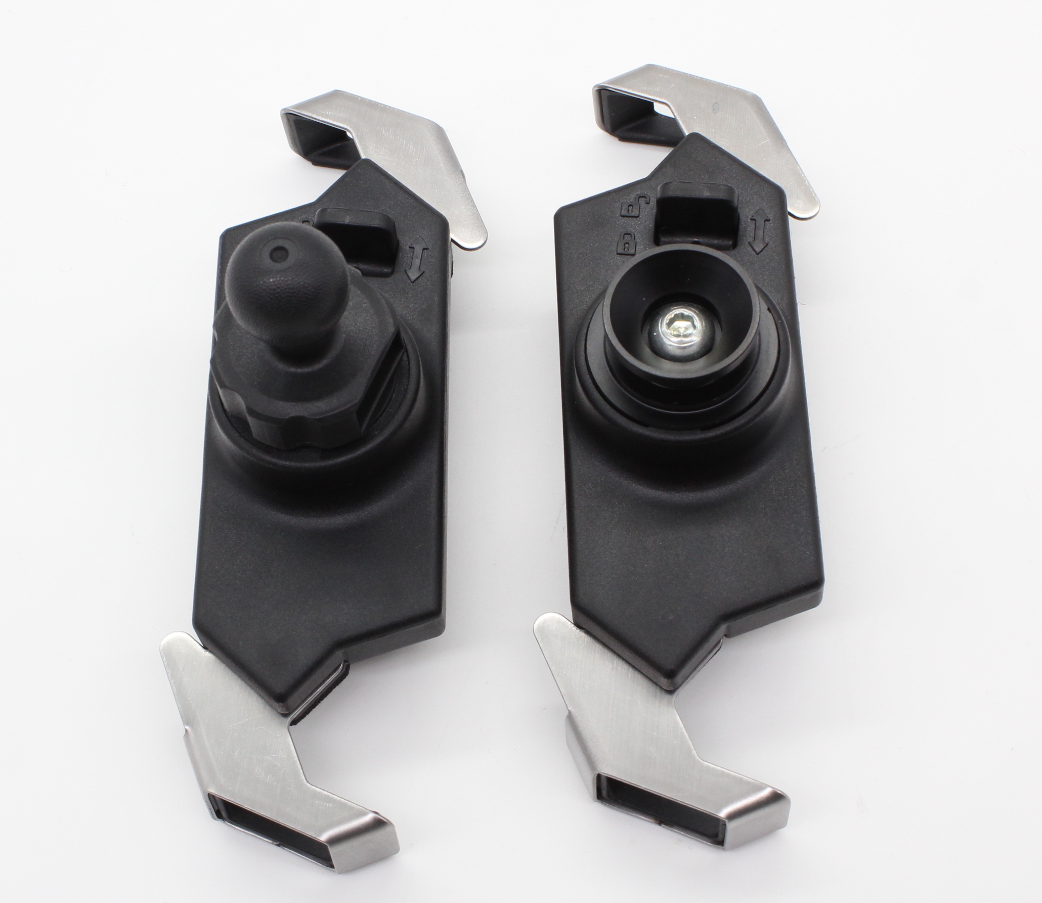 手機架後的固定鎖扣,在裝好手機後,向下一壓即鎖死滑動關節。