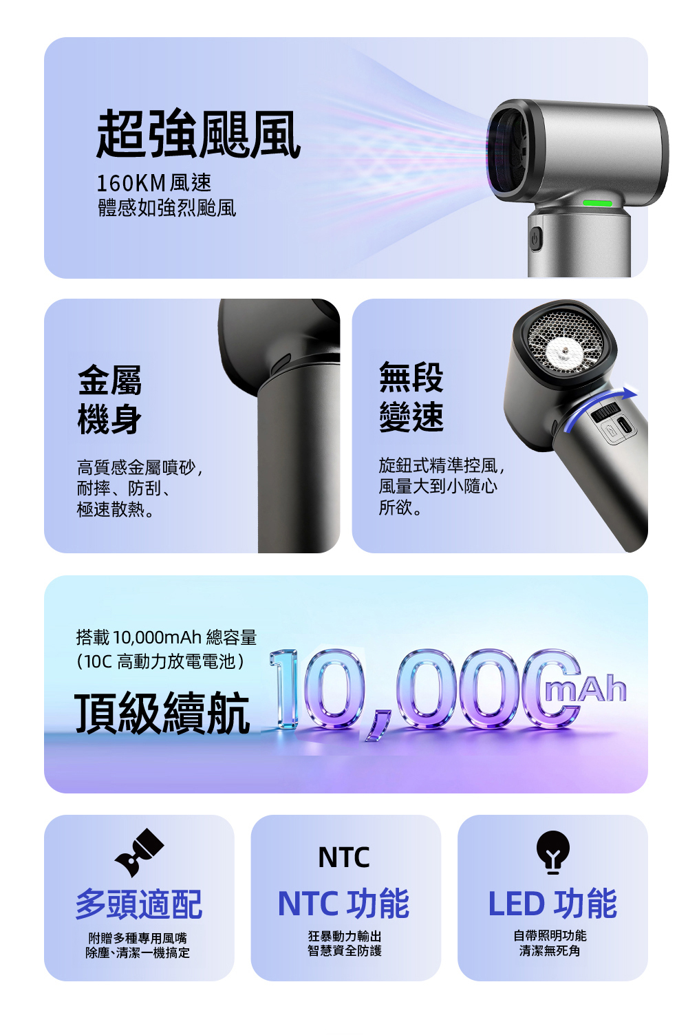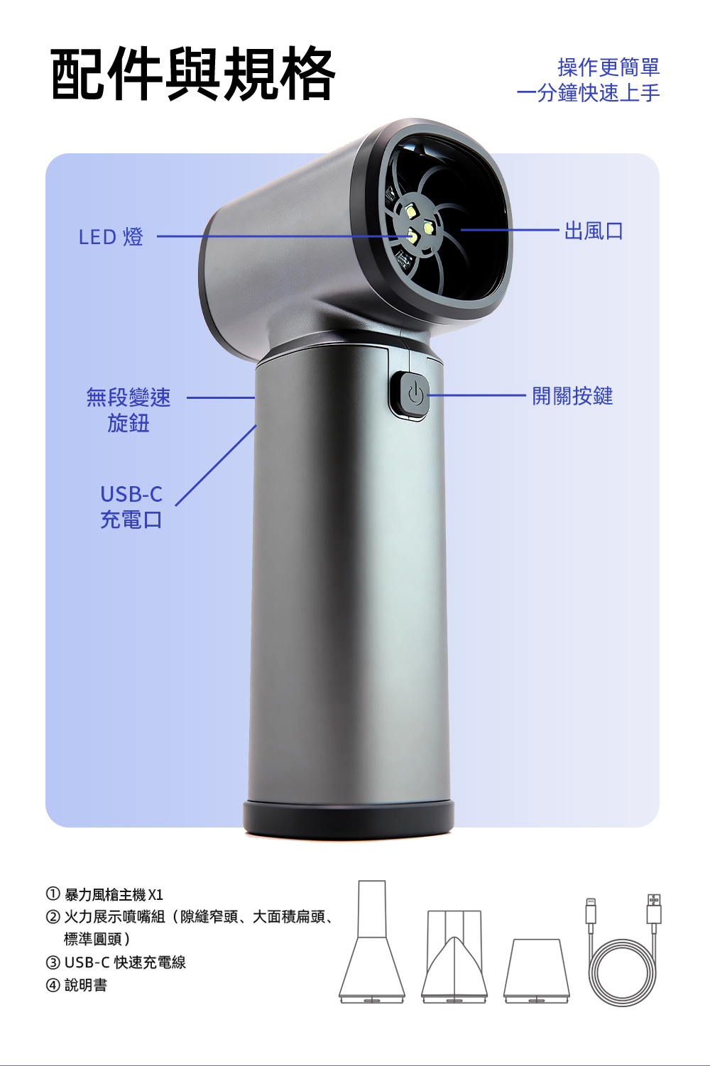 ➤ 旋鈕式無段調速設計,風力細緻可控,精準到位