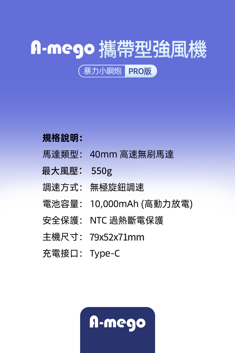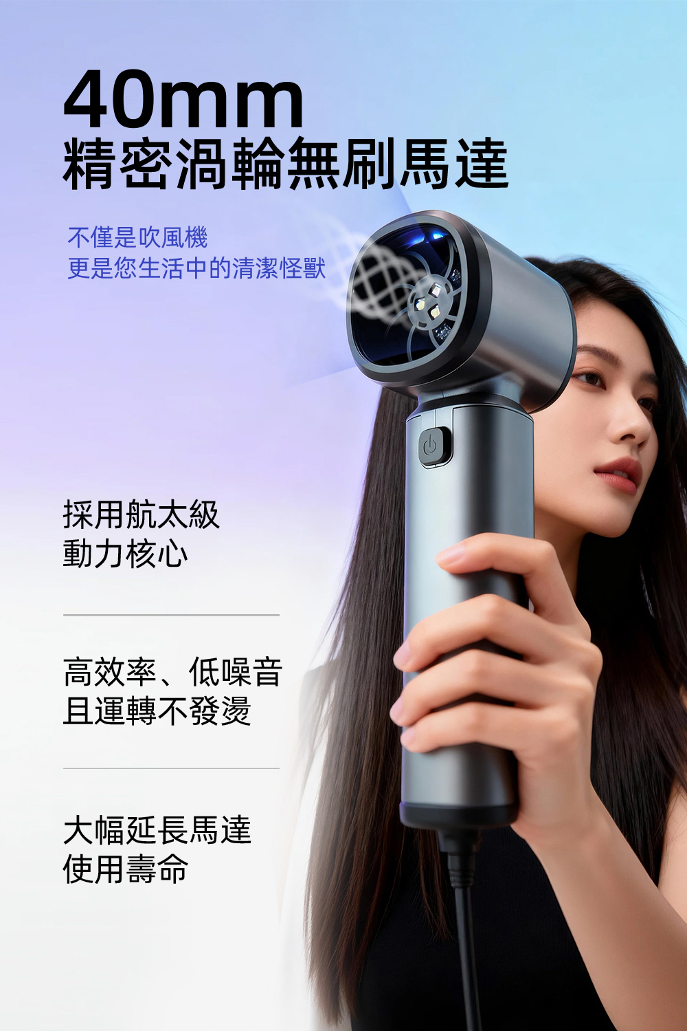 ➤ 40mm 無刷馬達,高效率、低噪音,穩定耐用不衰減
