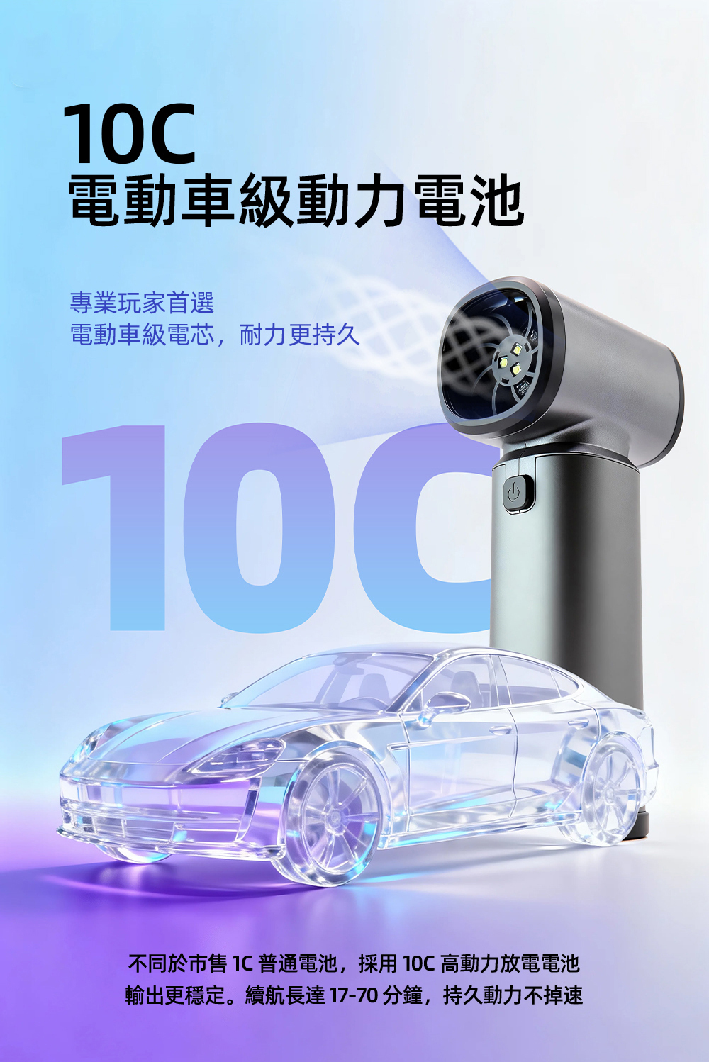 ➤ 10,000mAh 高效動力電池,長時間使用,不受電線限制