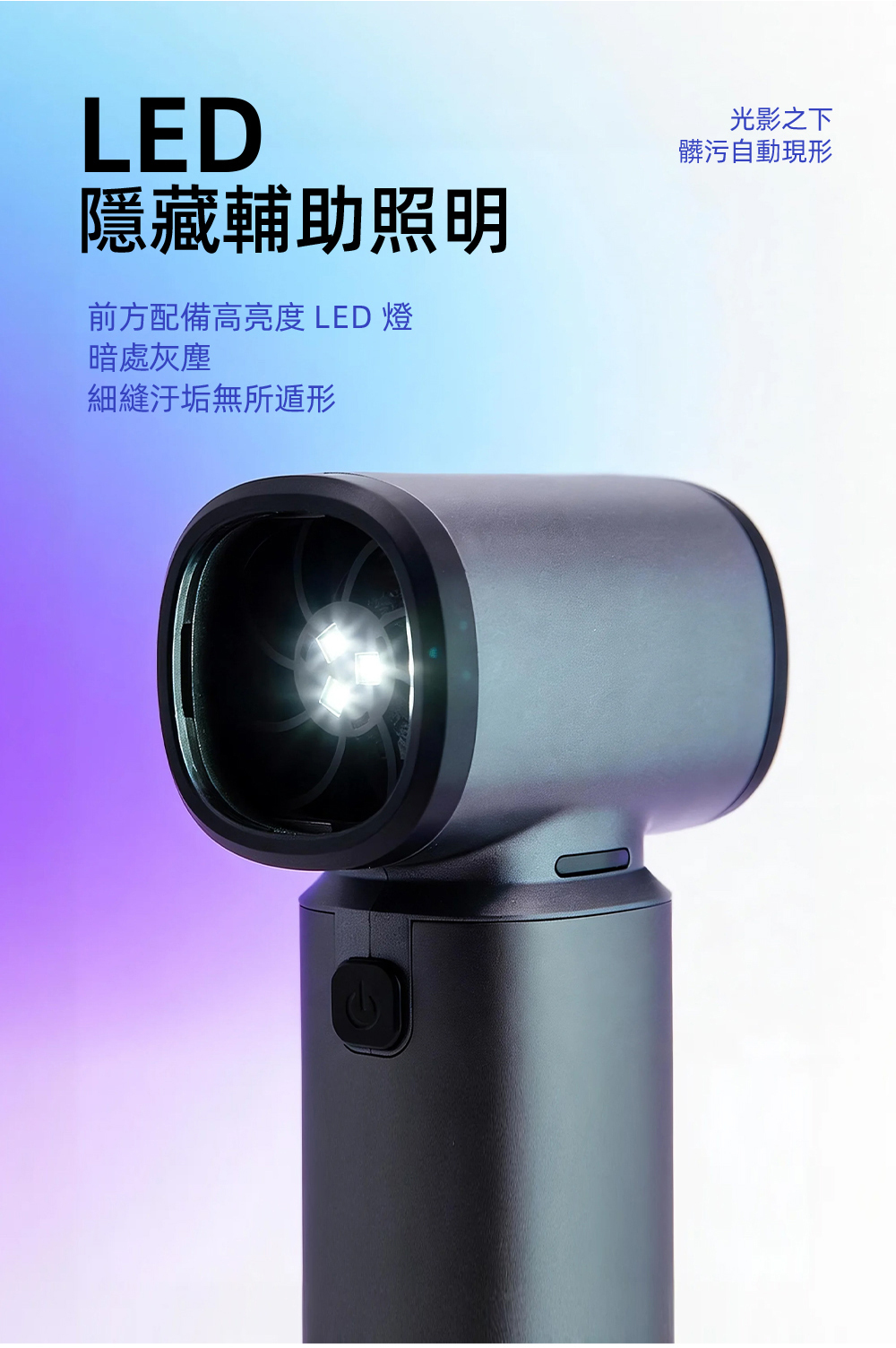 ➤ LED 輔助照明,暗處與縫隙清潔更清楚