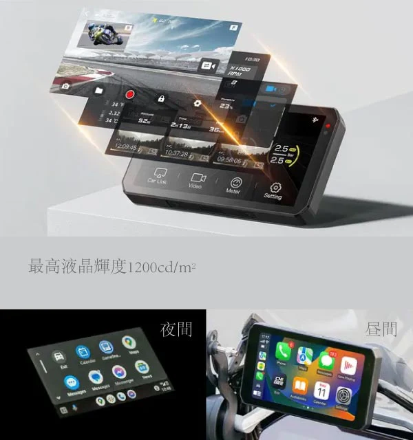 AIO-5 Lite Carplay 液晶螢幕螢幕最大亮度 1200cd/m²,夜間或夜間提供出色的可視性,可根據周圍環境自動調整螢幕螢幕亮度,