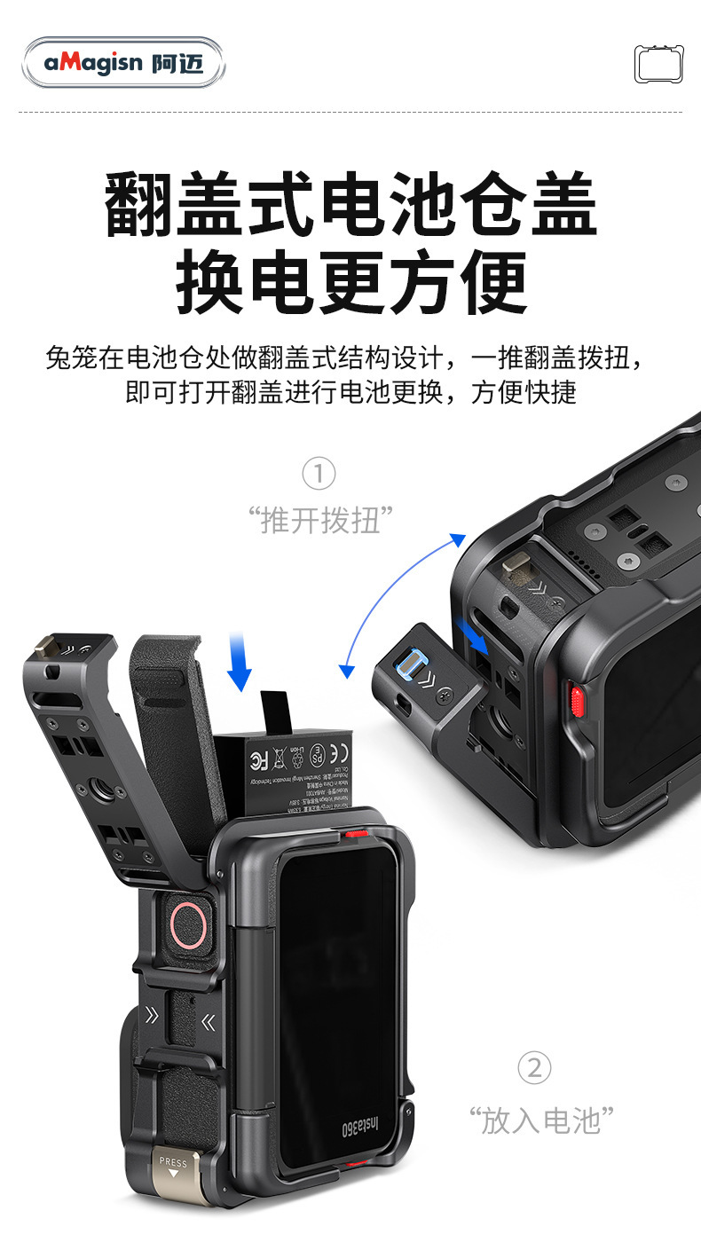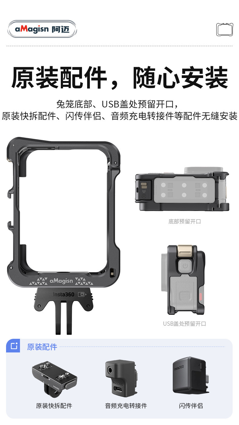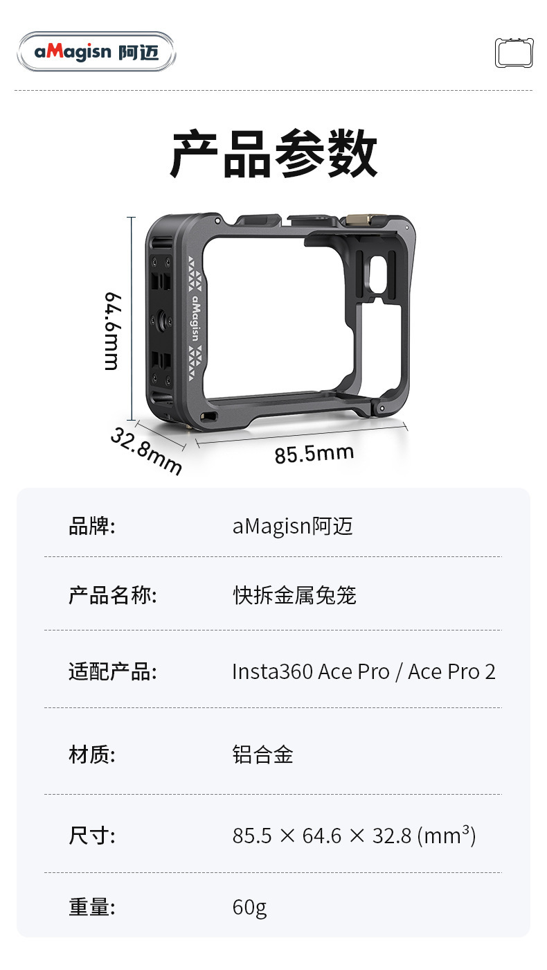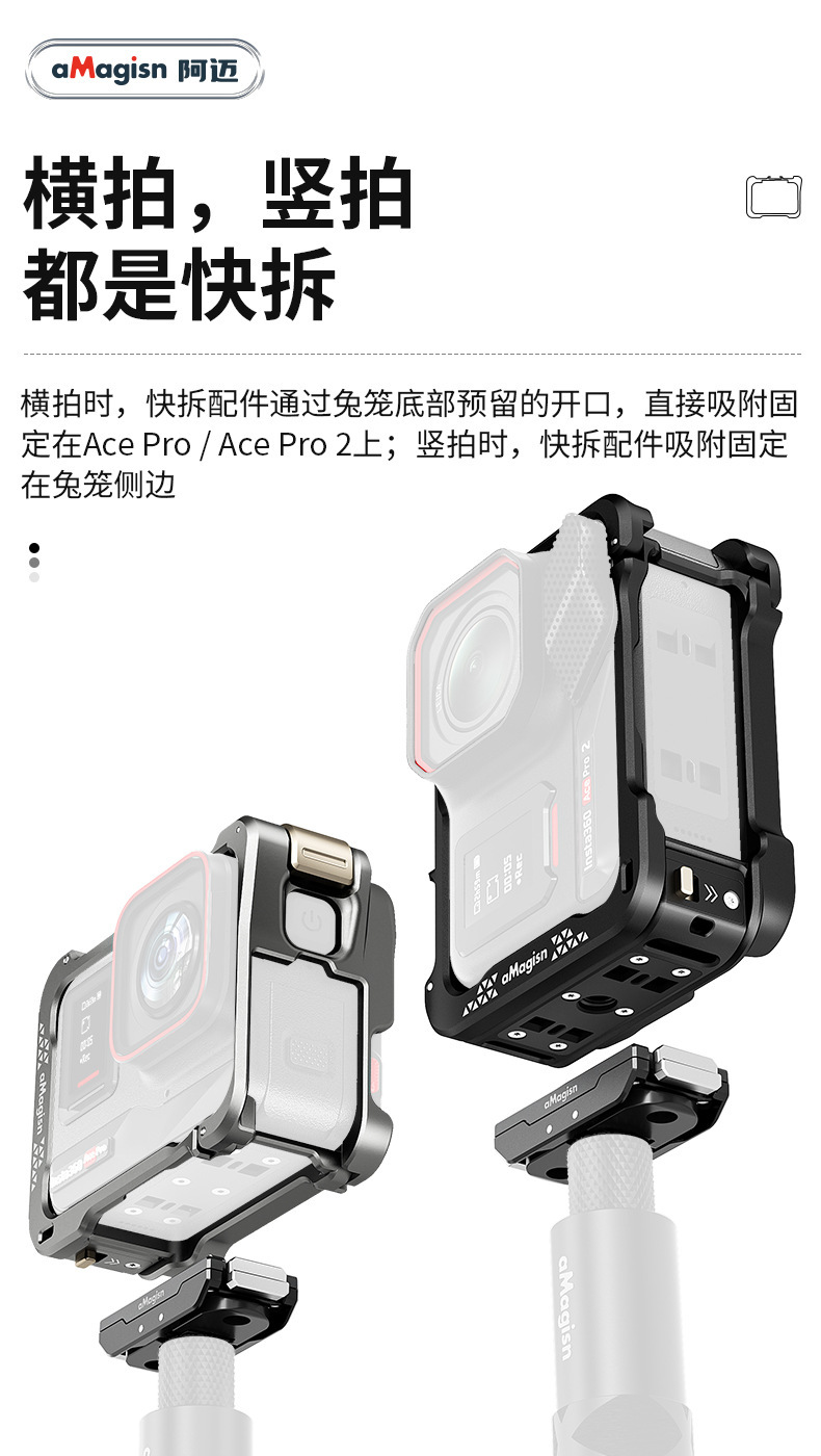 aMagisn Insta360 Ace/AcePro金屬快拆兔籠保護框