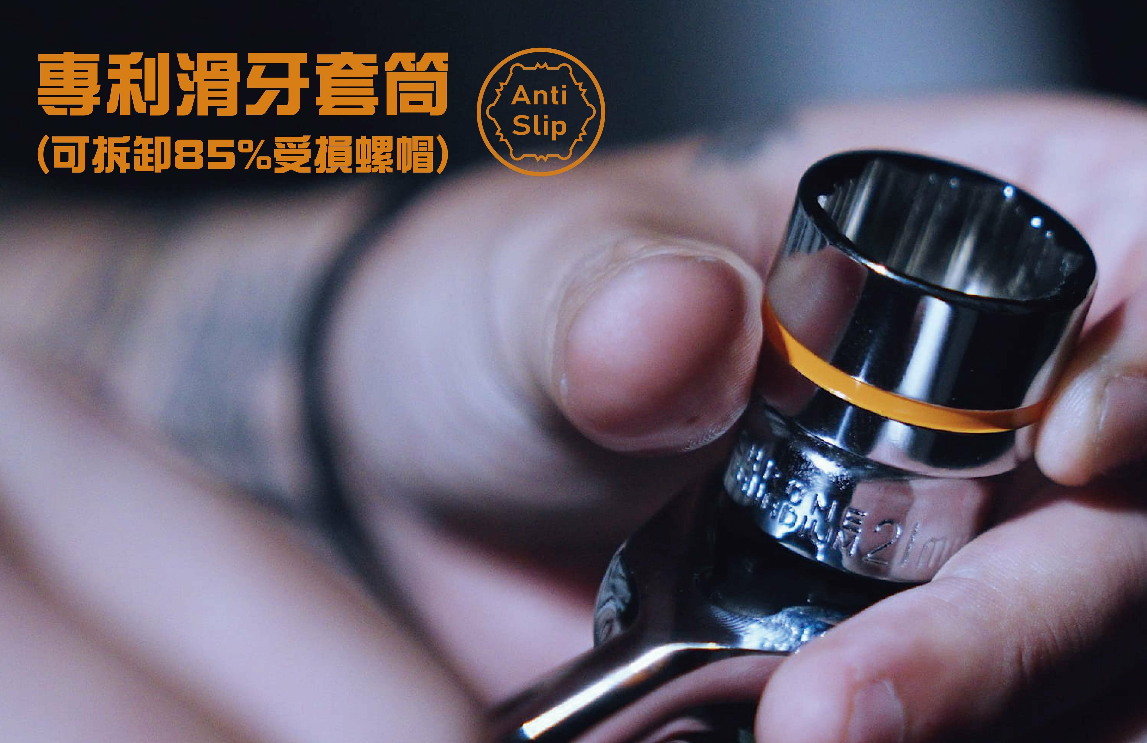 • 專利滑牙套筒,防止螺帽滑牙、可拆卸 85% 受損螺帽