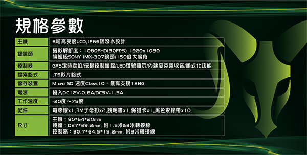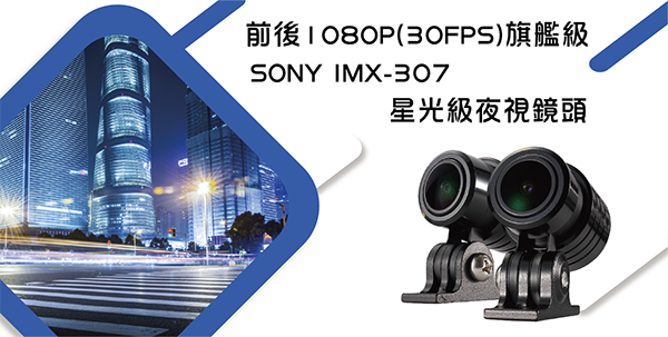 • 前後1080P-30FPS 旗艦級SONY-IMX307鏡頭,星光級夜視錄影