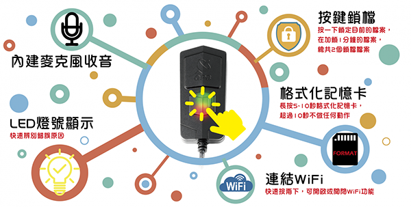 • 內建麥克風收音、按鍵控制鎖檔、格式化功能及LED燈號顯示