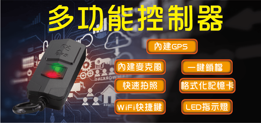 • 控制器內建GPS定時定位,按鍵控制鎖檔及格式化功能,LED燈號顯示,內建麥克風收音