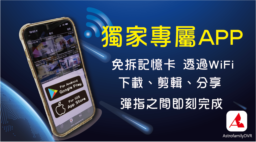 • 主機內建WiFi功能,搭配專用APP觀看影片更便利