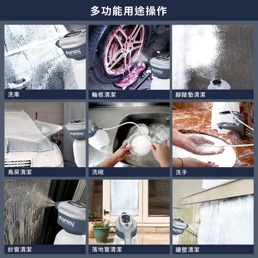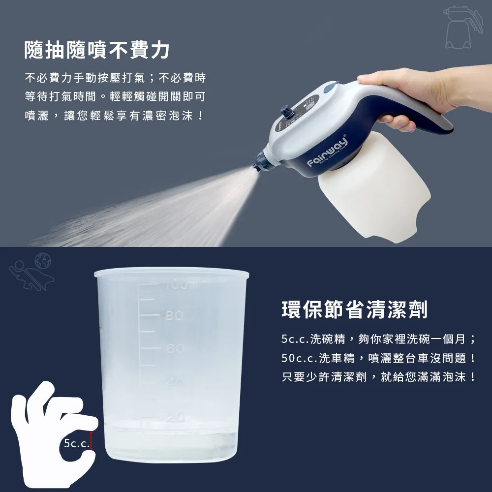 Fairway 電動無線泡沫噴壺,觸控感應技術,讓你輕鬆洗車沒負擔!