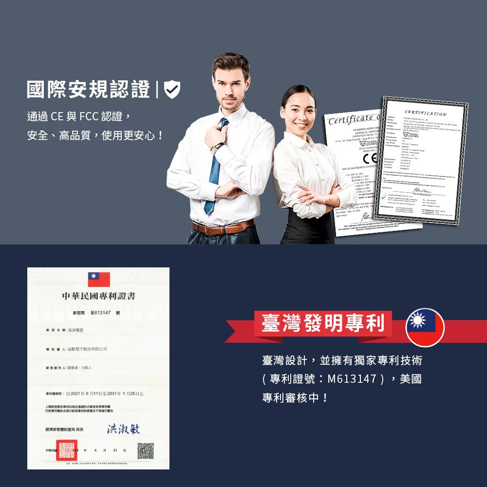 • 安全認證:歐盟 CE / 美國 FCC / IEC62133