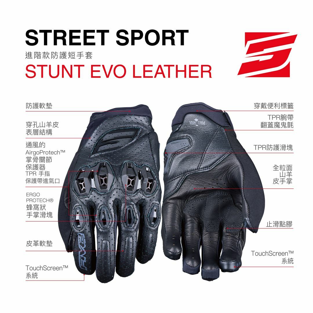 Five 5 STUNT EVO 2 leather 進階款防護短手套