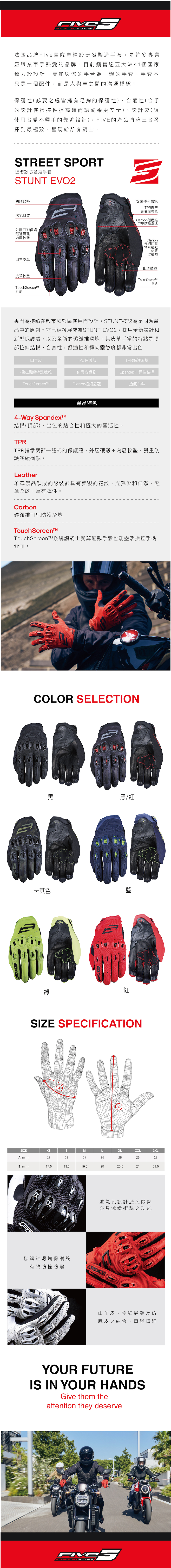 • Five 5 STUNT EVO2 進階款防護短手套 x1