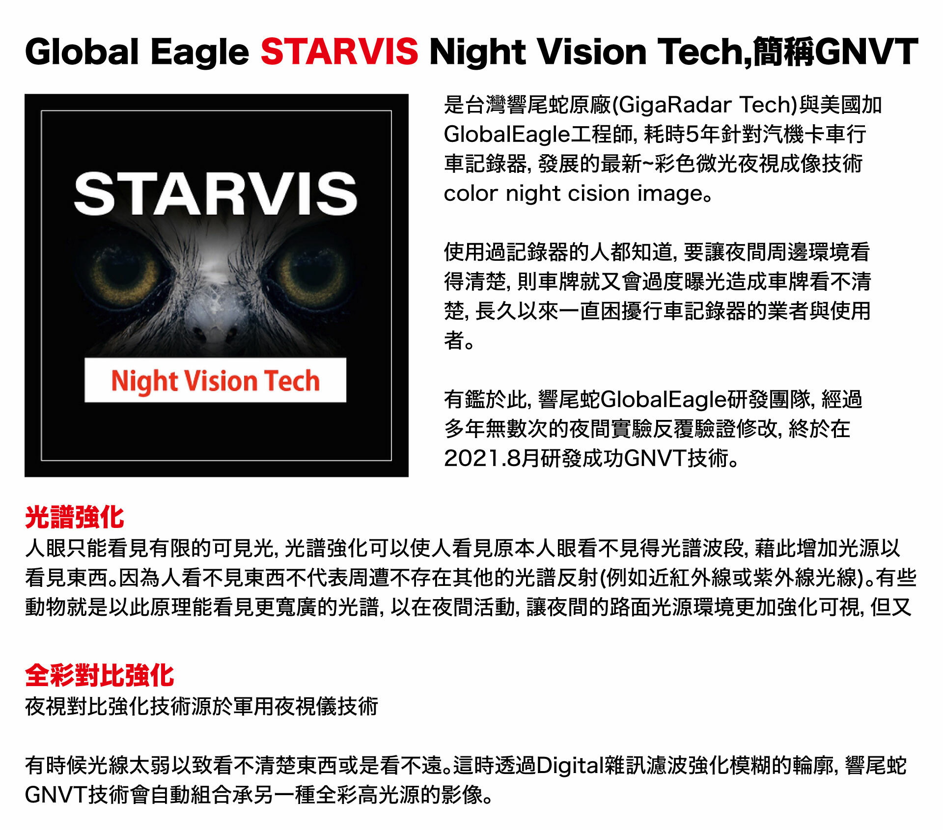 響尾蛇 X-6 / X-6 PRO 雙鏡頭行車記錄器 GNVT夜視成像技術