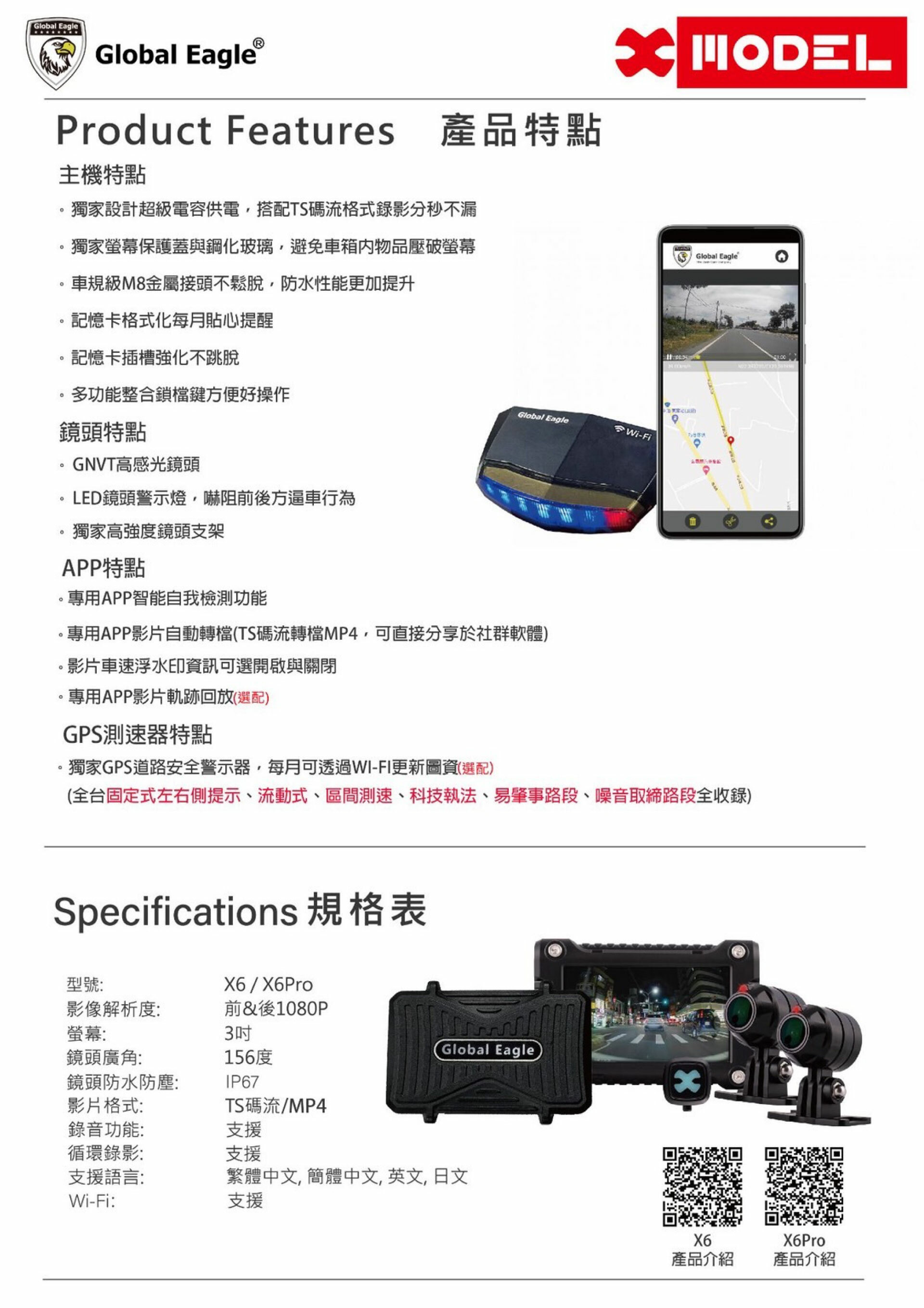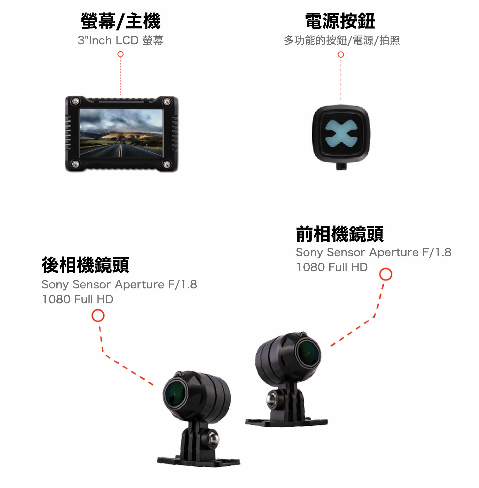 2022 全新機種,響尾蛇 X-6 機車雙鏡頭行車記錄器,彩色微光夜視成像技術,夜拍再升級!