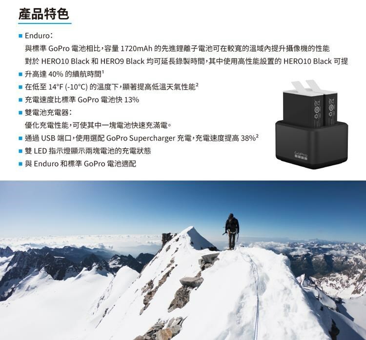 GoPro 原廠ENDURO雙充電 電池充電器,提升電池續航時間40%!