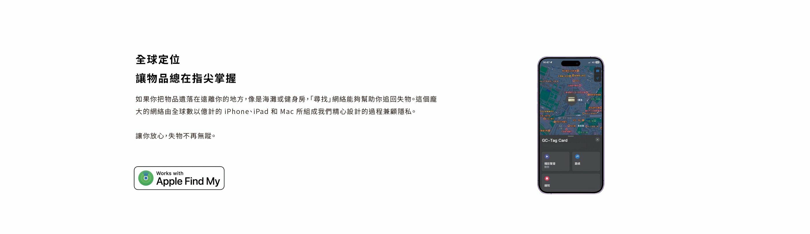 • 蘋果系統結合:直接使用 iPhone「尋找」既可連接