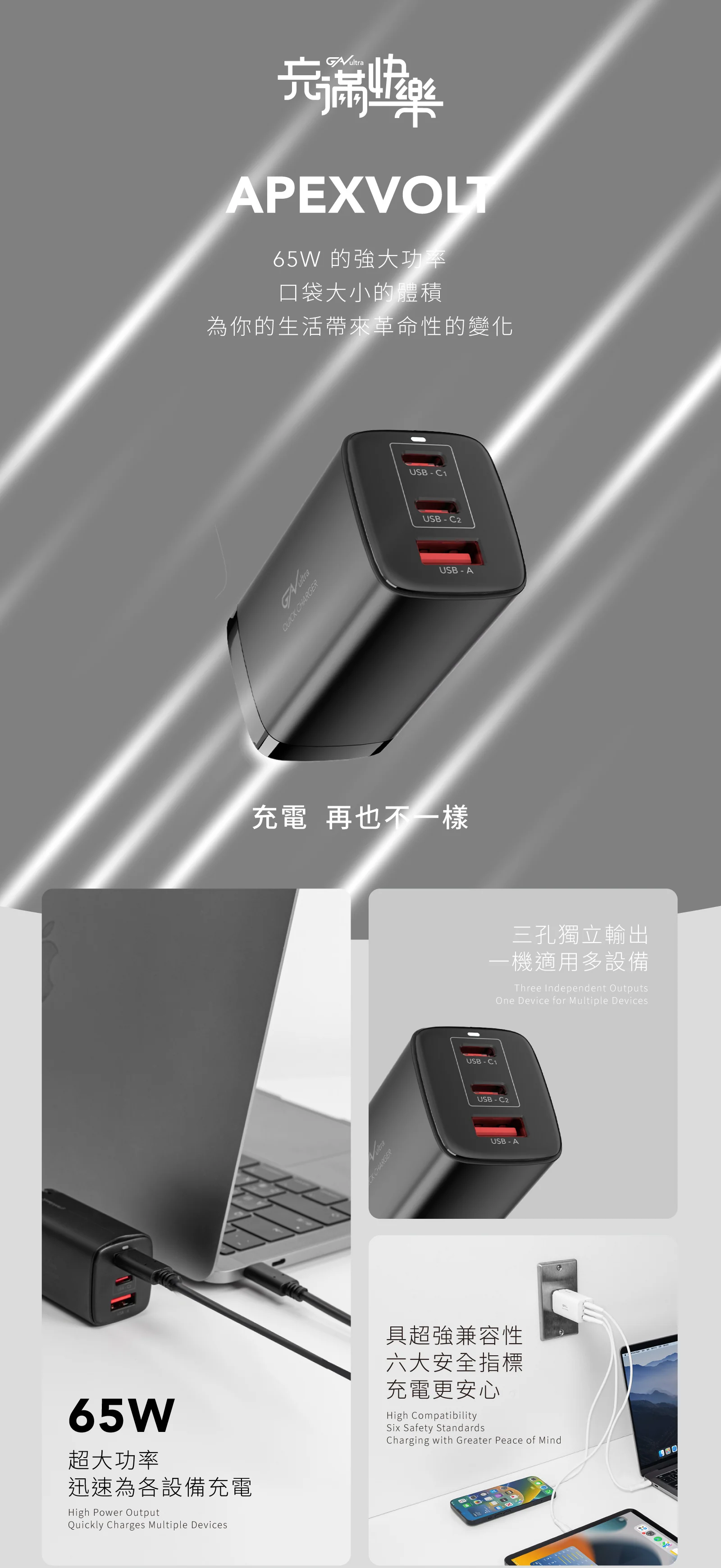 grantclassic 充滿快樂 ApexVolt PD65W GanUltra 充電器