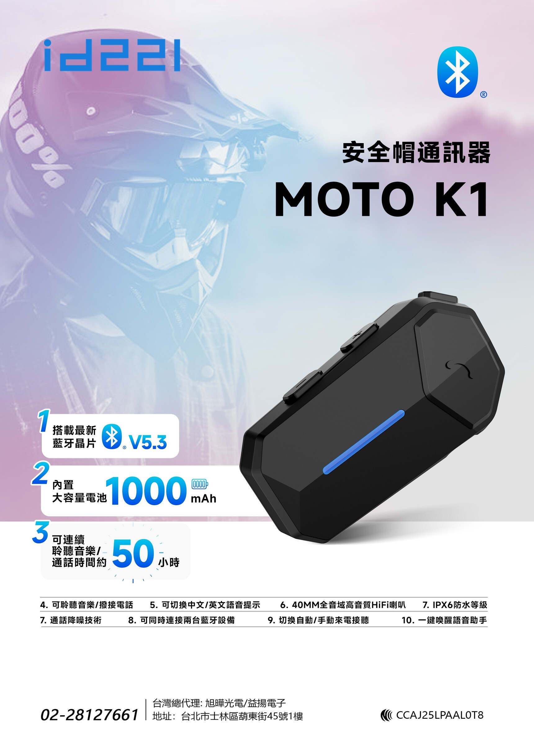 id221 MOTO K1 安全帽藍牙耳機麥克風