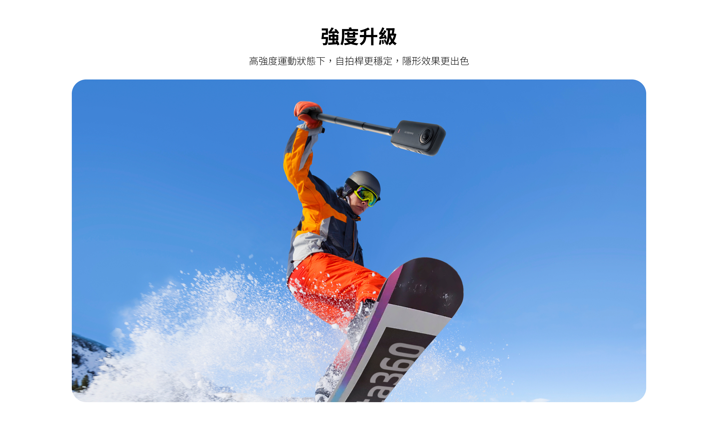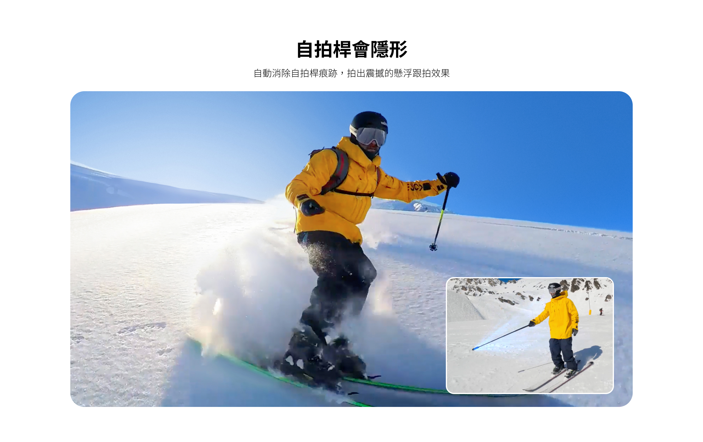 • 自拍桿會隱形,自動消除自拍桿痕跡,拍出震撼的懸浮跟拍效果