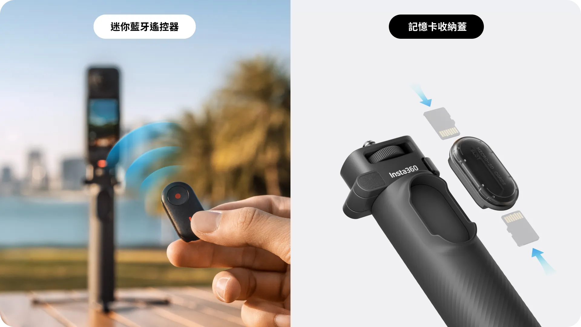 可搭配迷你遙控器,遠距離也能一鍵開拍美好瞬間,體驗升級。