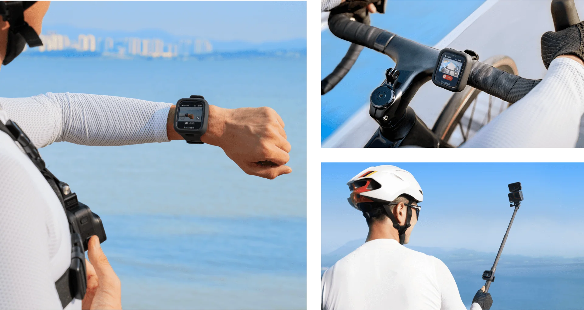 • 在水中使用本產品之前,請在遙控器背面貼上乾燥的一次式雙面貼紙,並將其貼在腕帶或通用帶上以提高安全性