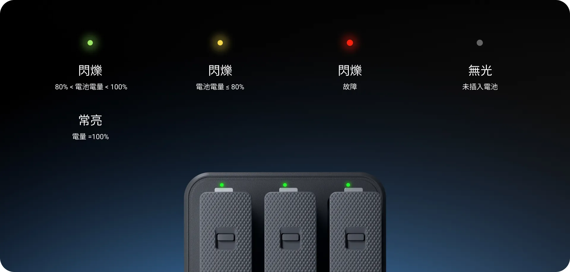 • 充電底座只適用 Insta360 X4 電池。 其他型號的電池不能使用本裝置充電