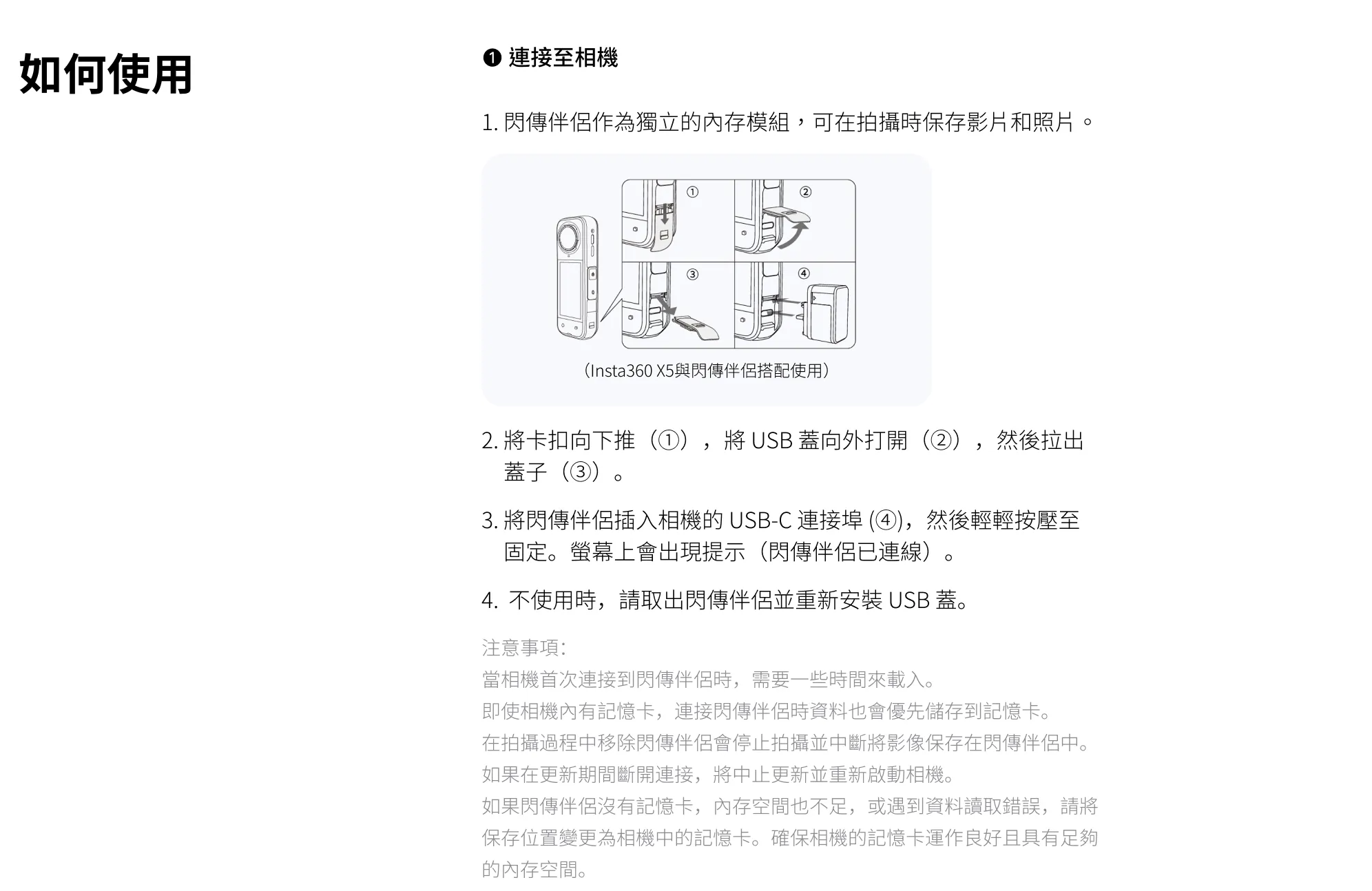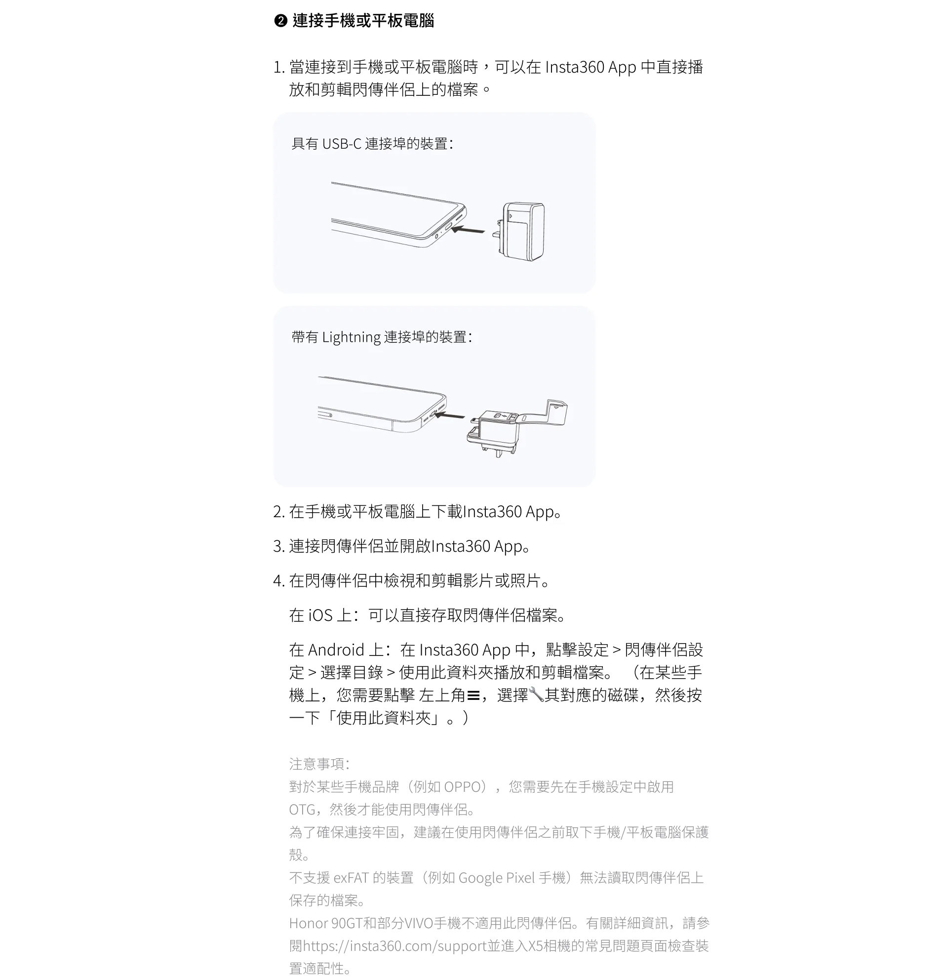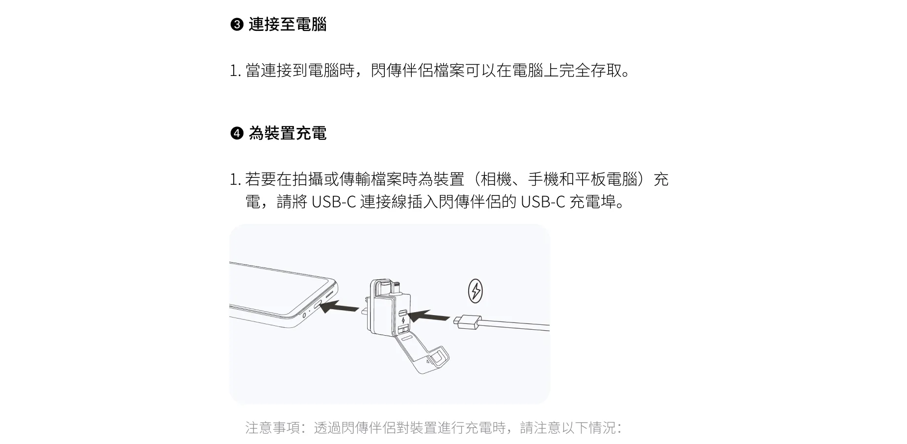 1. 閃傳伴侶的 USB-C 連接埠僅用於充電。它不能用於傳輸資料。