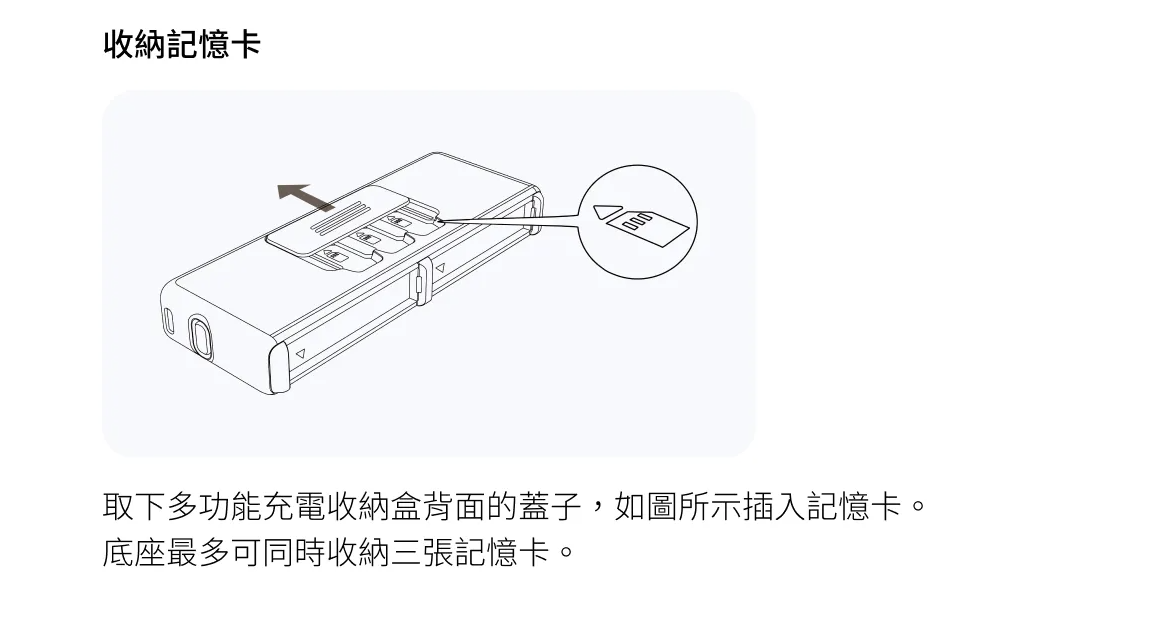 3. 使用外接電源(直接電源或行動電源)時,請在電池充滿電後拔下多功能充電收納盒。