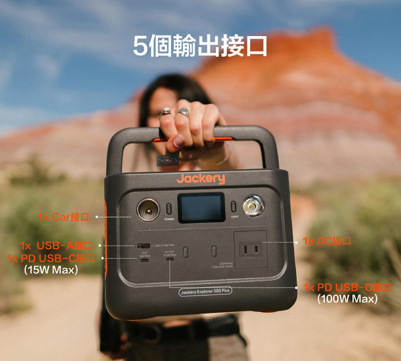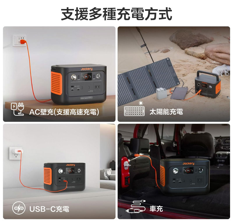• 太陽能光充( 須搭配Jackery太陽能充電板 )