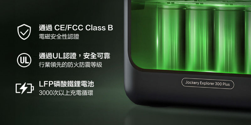 • 磷酸鐵鋰電池,3000次以上充電循環(80%+)