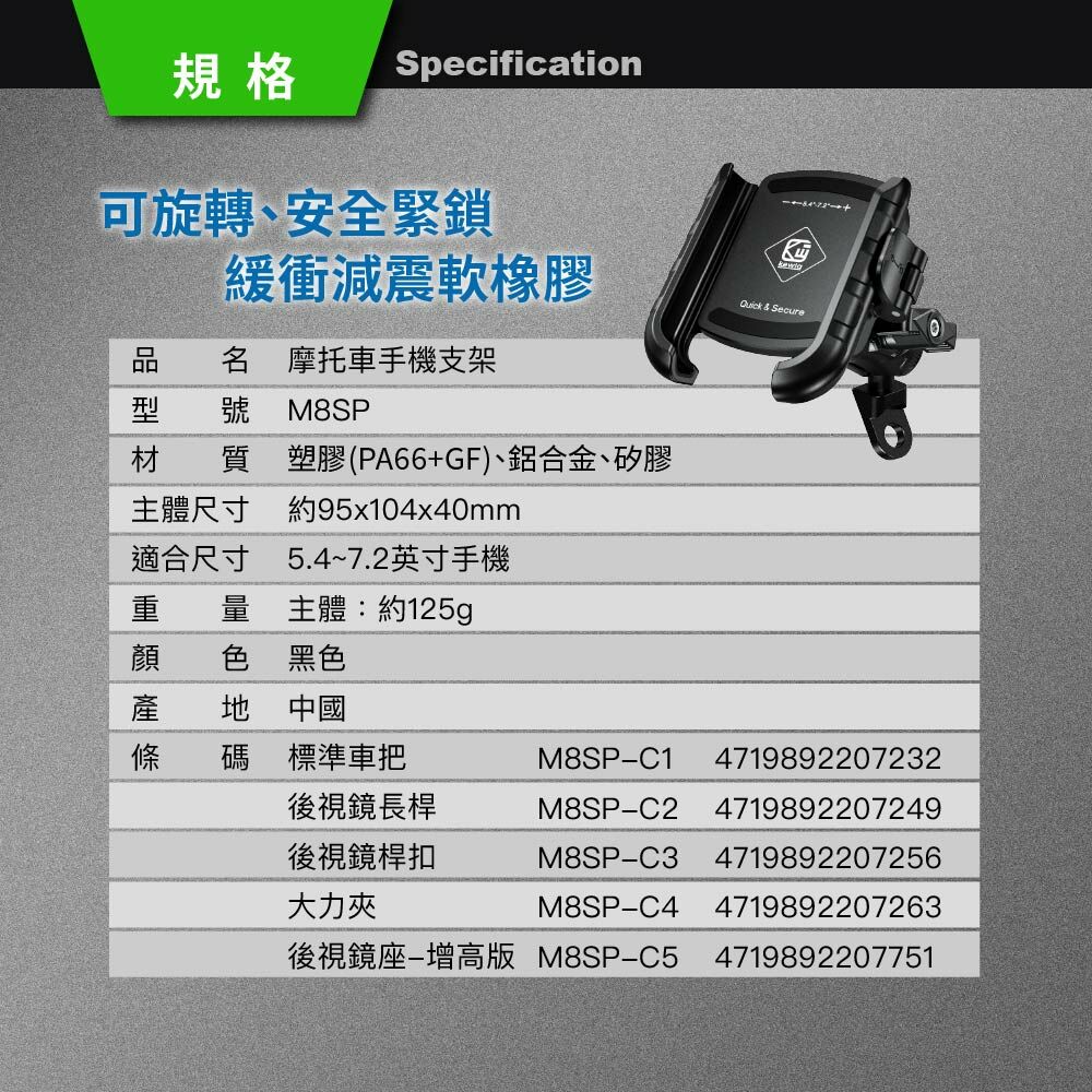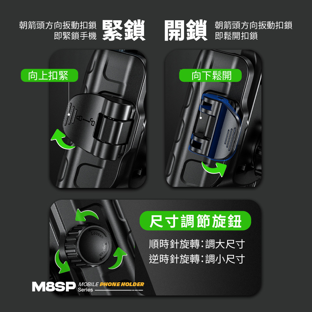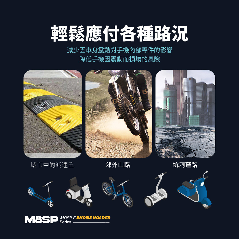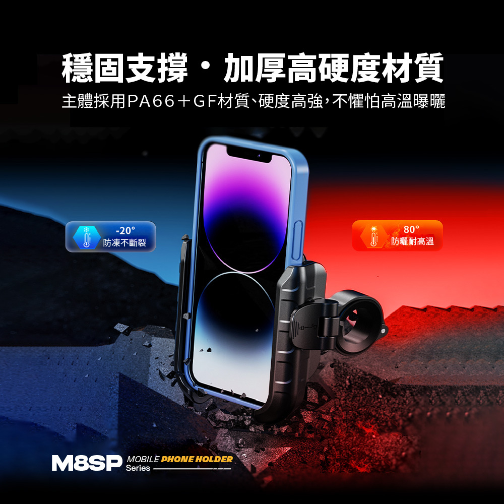 • 強韌耐用的材質,確保手機牢固固定,無懼顛簸路況