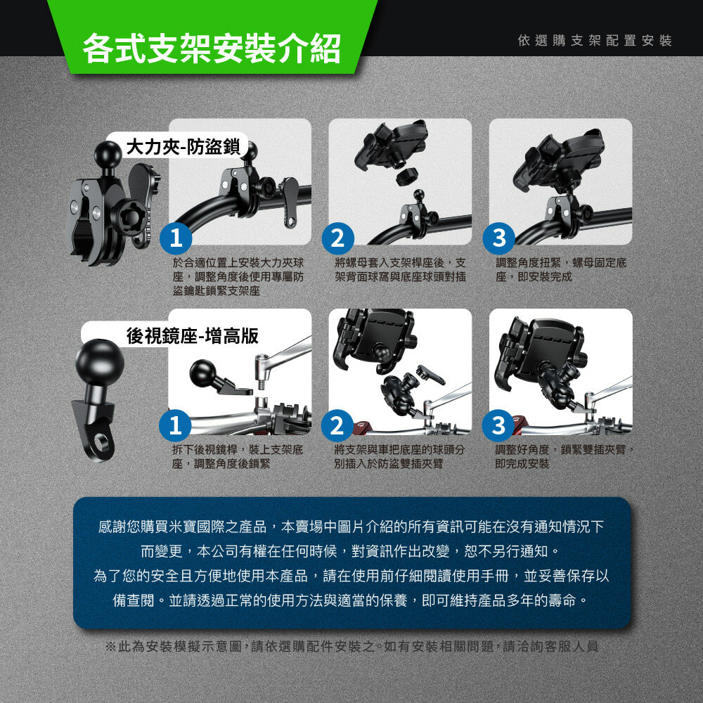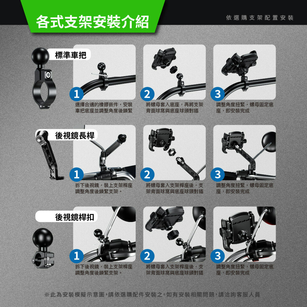 • 簡單安裝,只需幾個步驟,即可輕鬆固定於機車上
