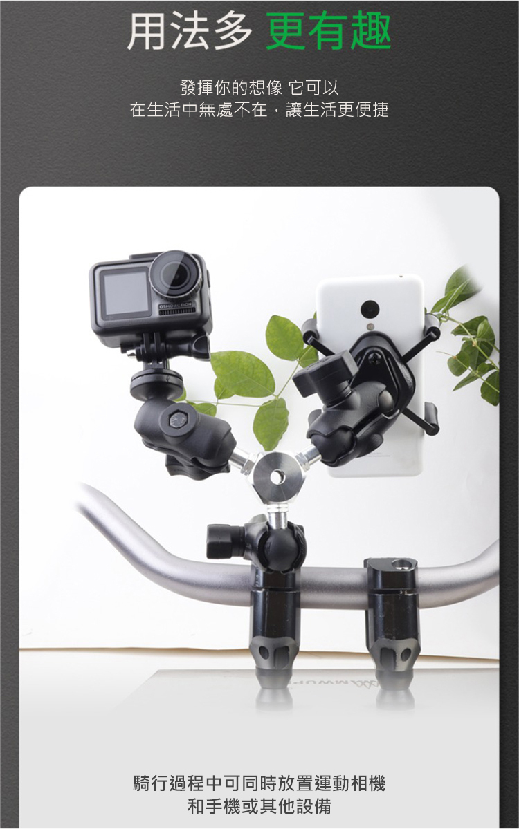 五匹 MWUPP 人字轉接三球頭,可同時放置手機、運動相機,騎行生活更便捷!