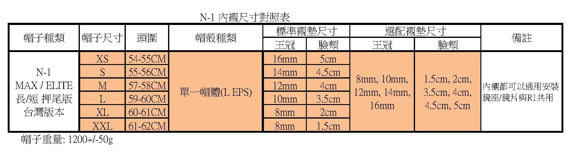 • 帽體重量 (含鏡片) 1200 ± 50 (g)