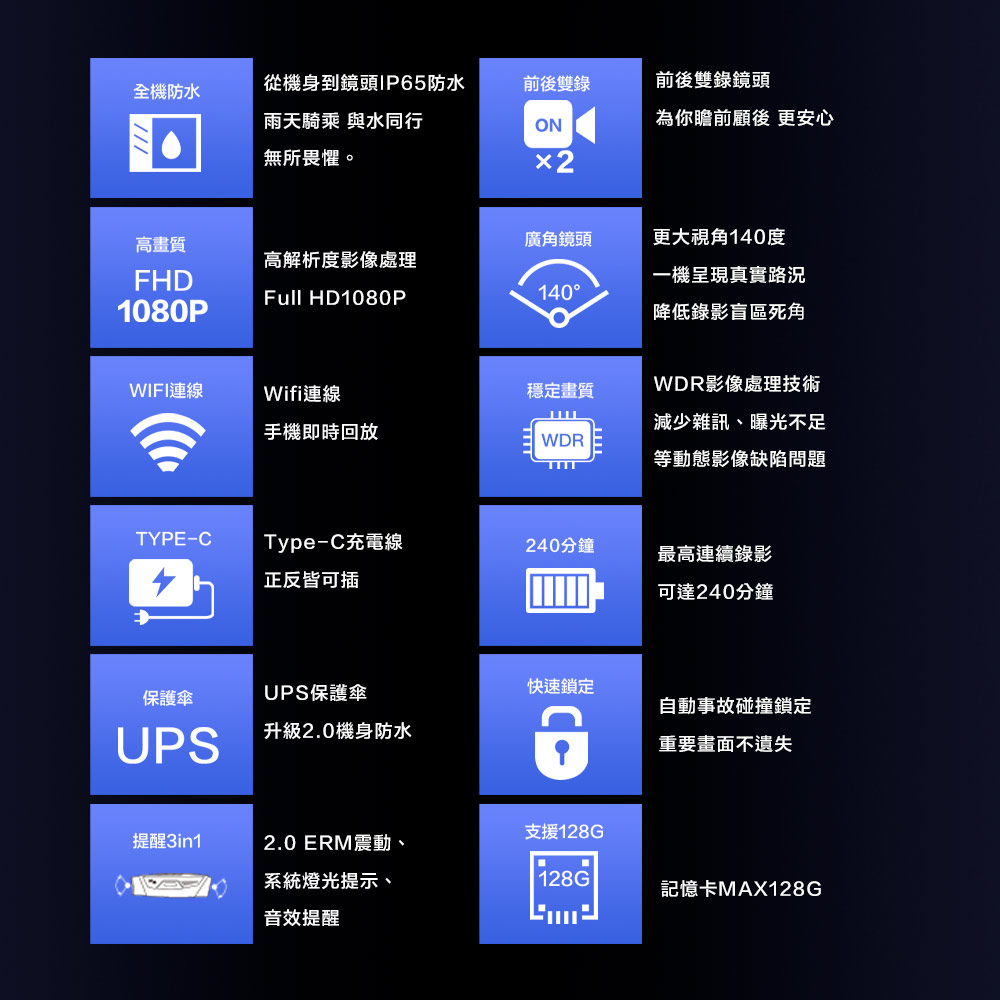 • 全機IP65防塵防水,雨天騎乘無所畏懼