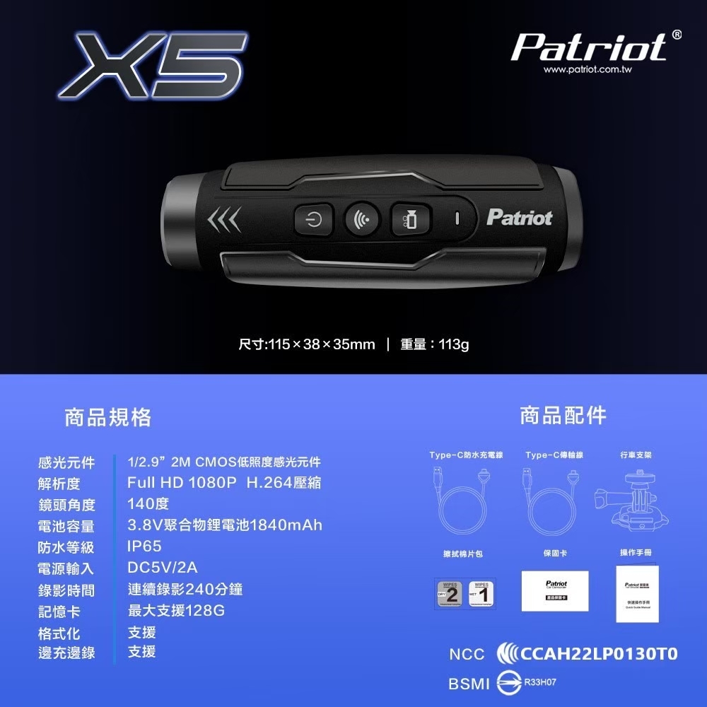 邊充邊錄、TS碼流以秒入檔,PATRIOT 愛國者 X5 雙鏡頭行車記錄器新上市!