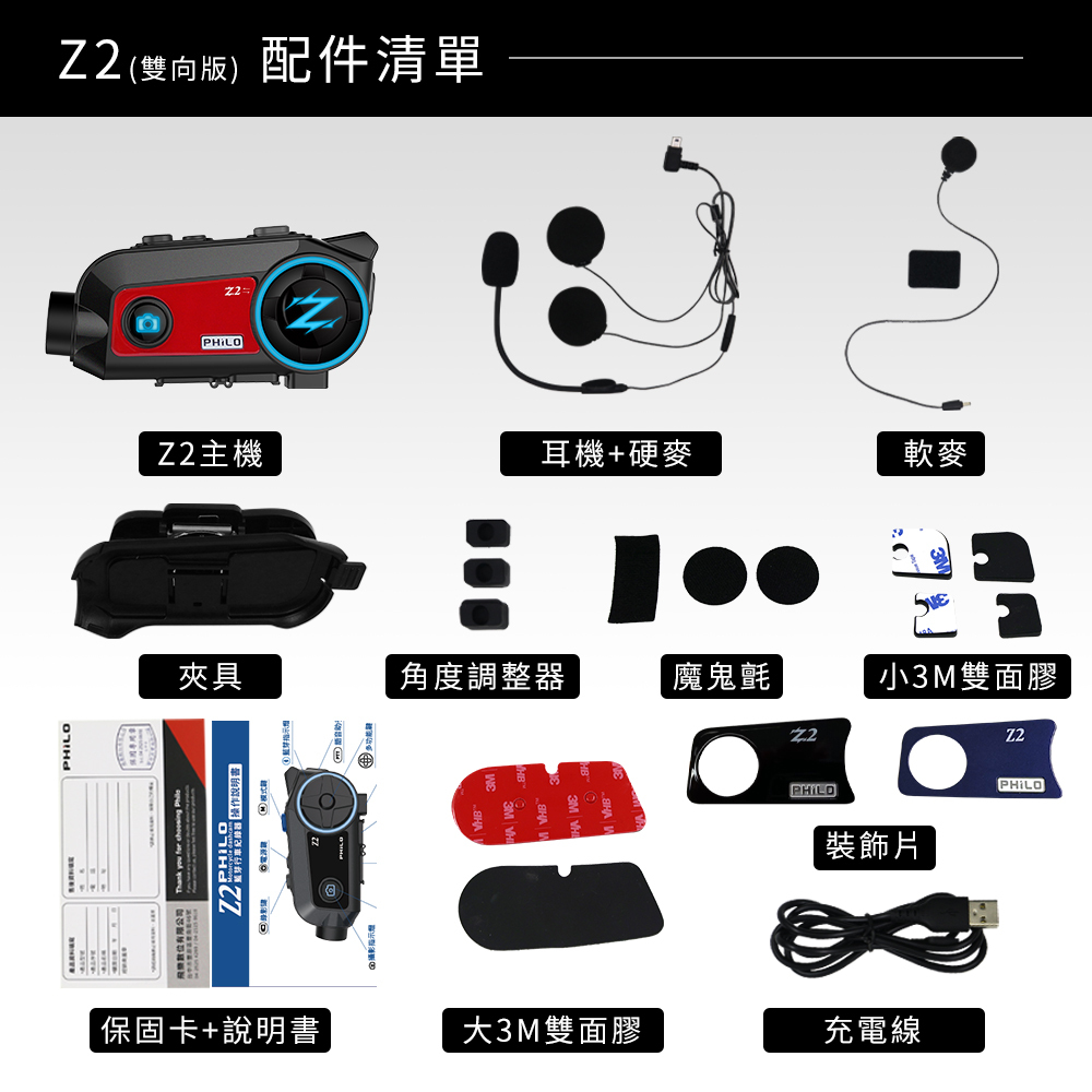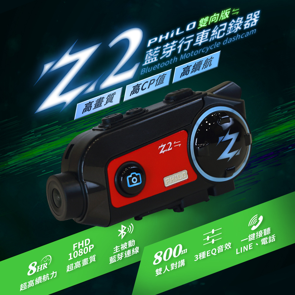 飛樂 Philo Z2 雙向版藍牙行車記錄器,藍芽升級主被動連線,雙人連線可達800公尺!