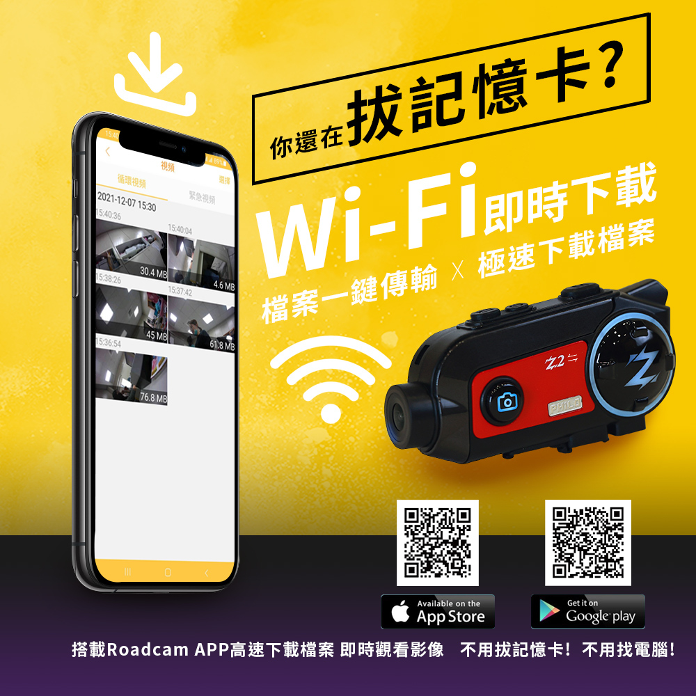 • 可連接Wi-Fi觀看即時錄影、下載,檔案即時下載