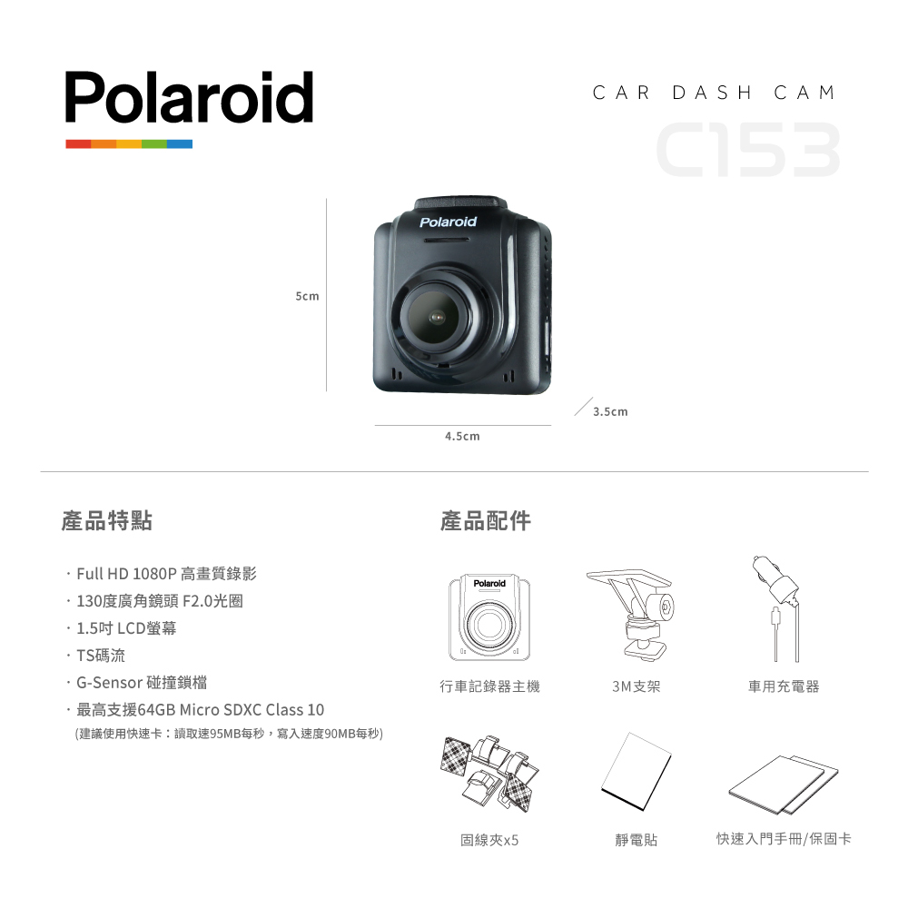 Polaroid 寶麗萊 C153 汽車行車記錄器(單前鏡頭)