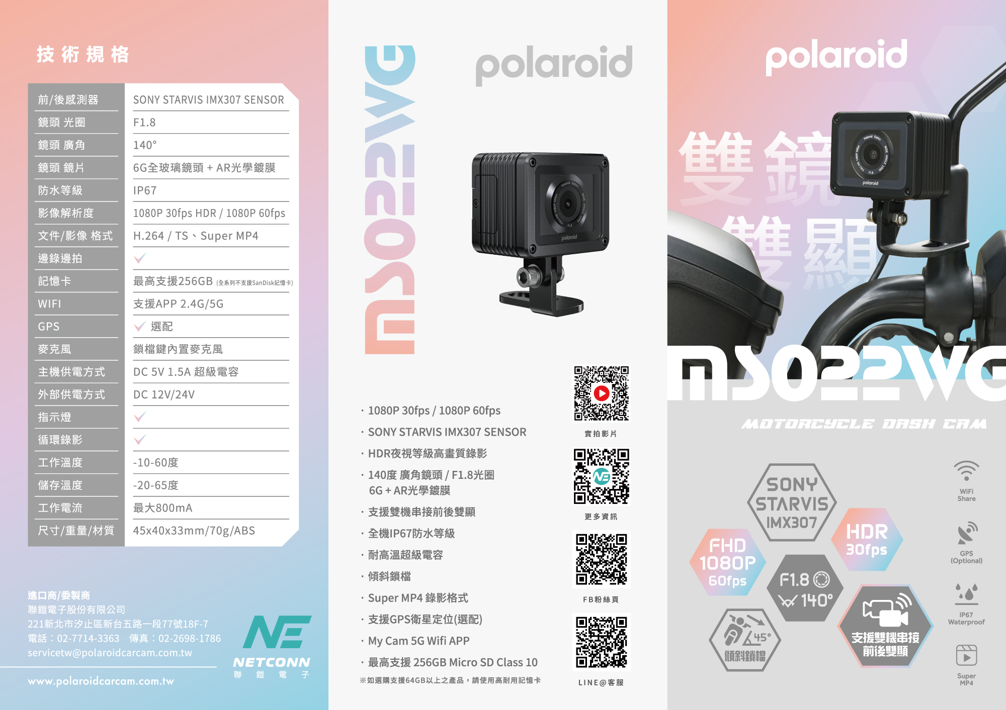 Polaroid 寶麗萊 MS022WG 雙鏡雙顯機車行車記錄器