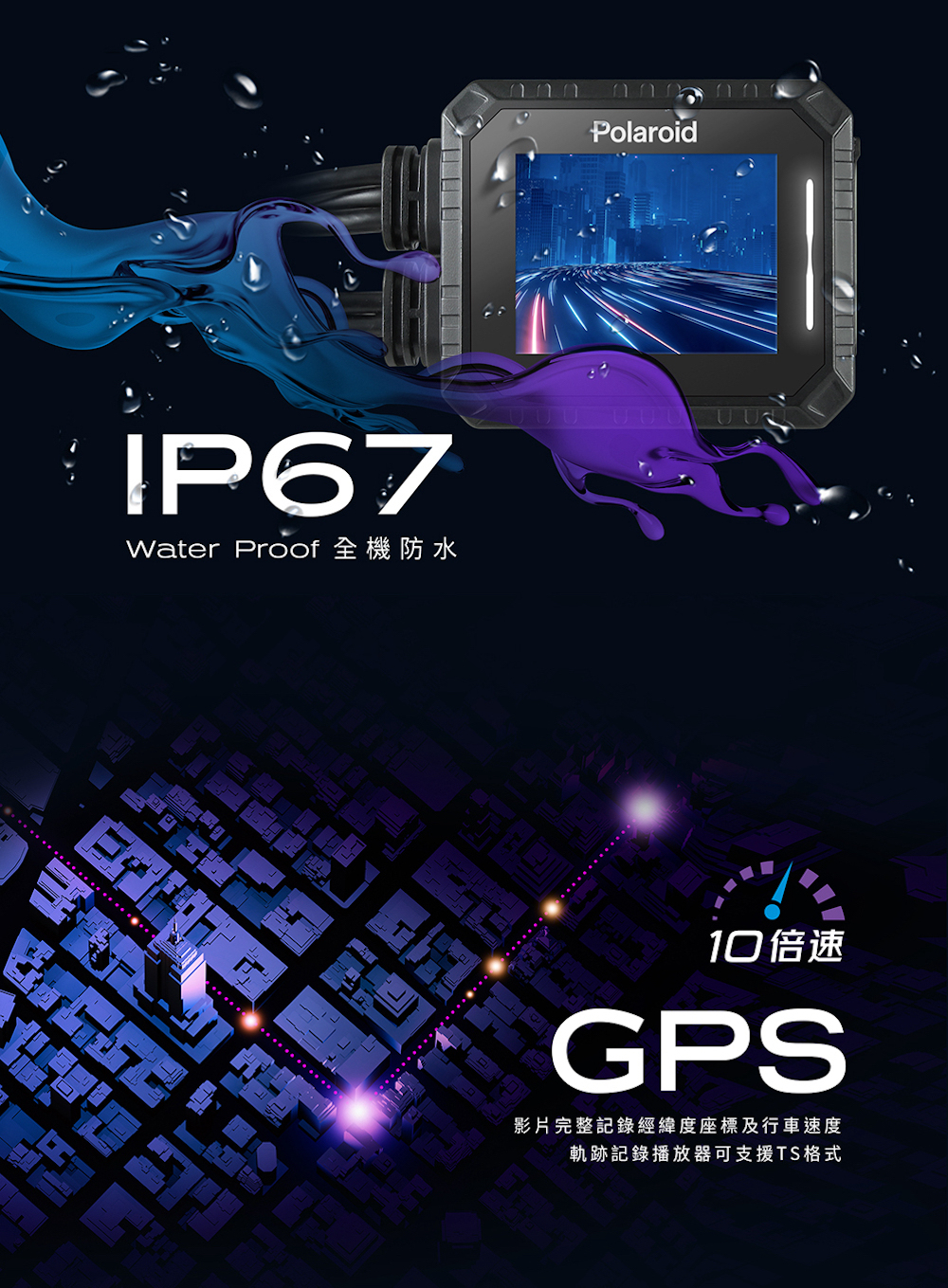 • 全機具有IP67防水等級,良好防水性能,雨天也可以安心使用